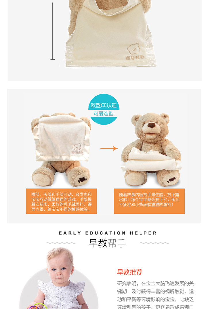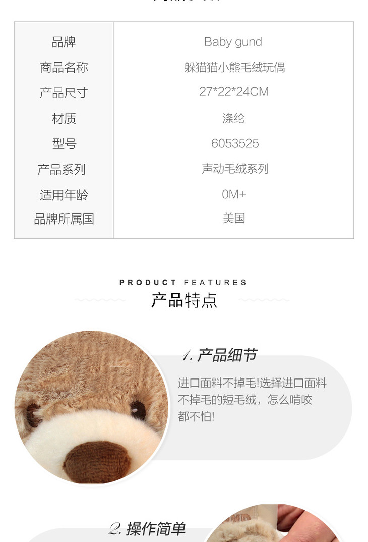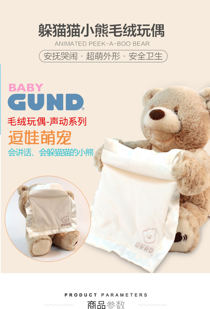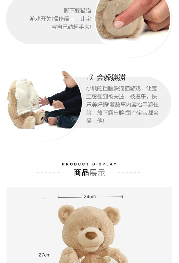 【BABY GUND】 声动躲猫猫小熊毛绒玩偶(新版短毛绒)