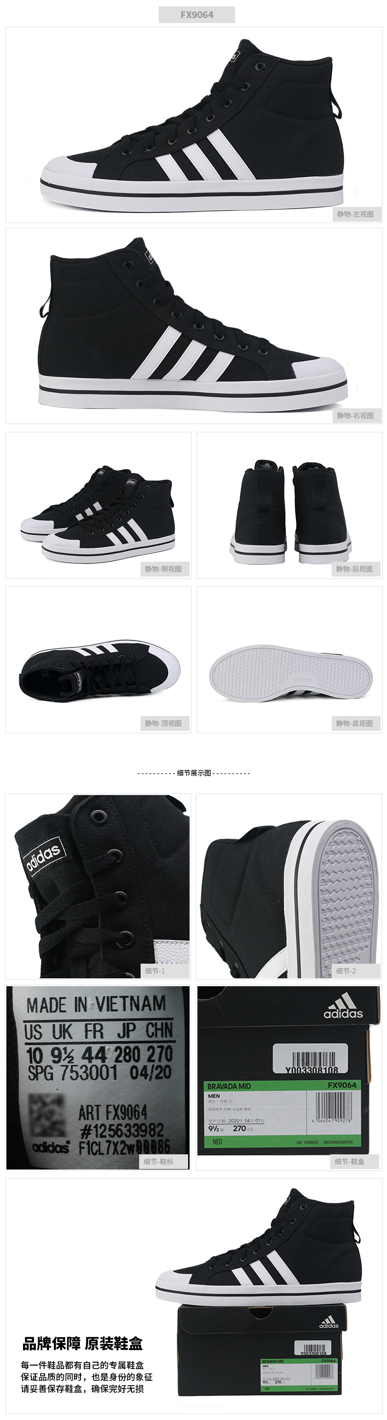阿迪达斯板鞋男鞋2022春季新款NEO运动鞋高帮耐磨休闲鞋男FX9064