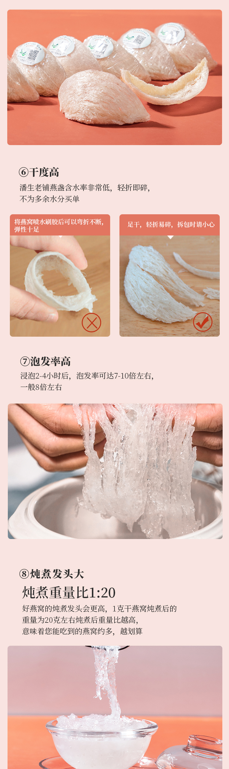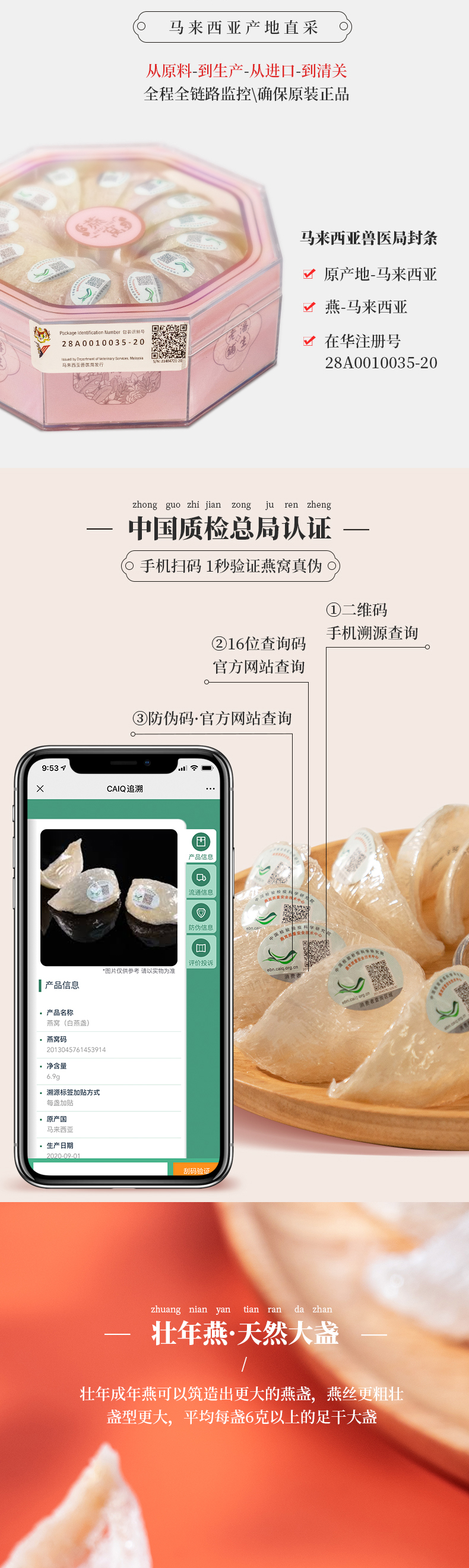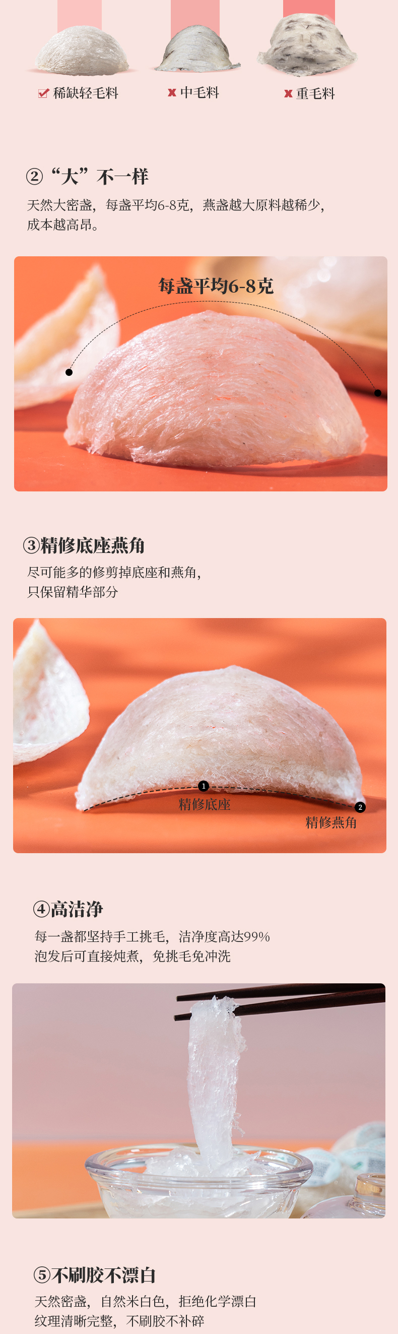 白燕窝燕盏 干燕窝 马来西亚 可溯源 100克