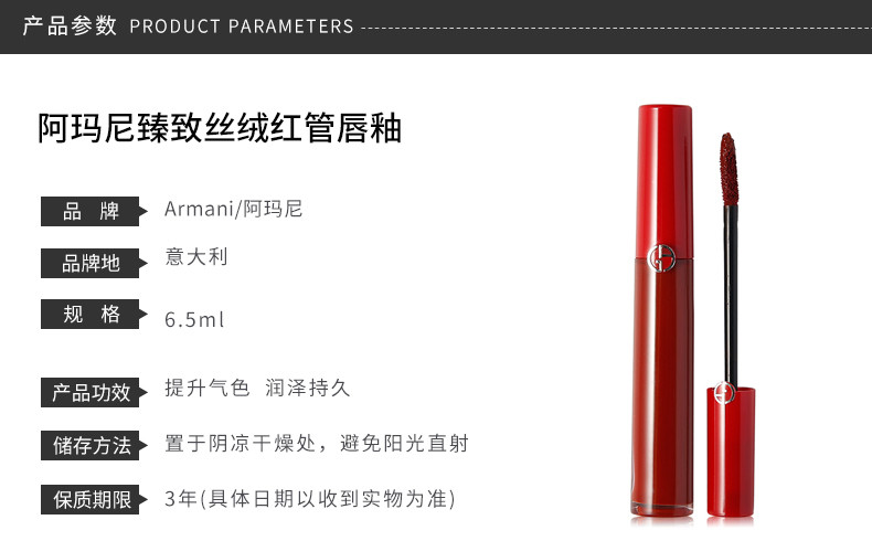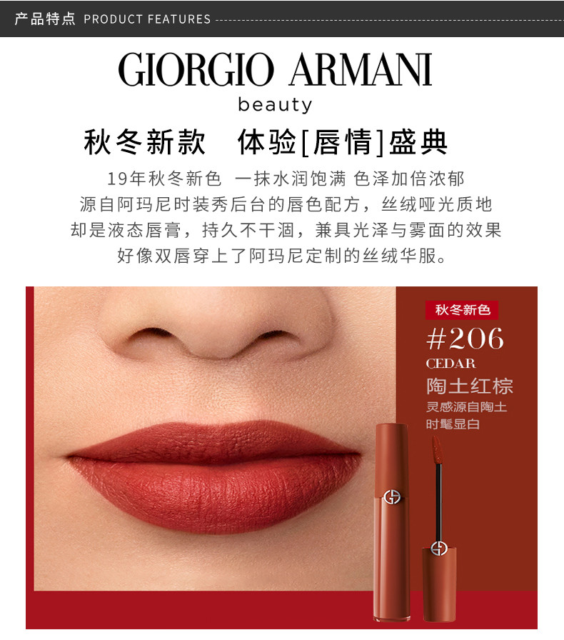 意大利 ARMANI阿玛尼 臻致丝绒红管唇釉 #206 6.5ML