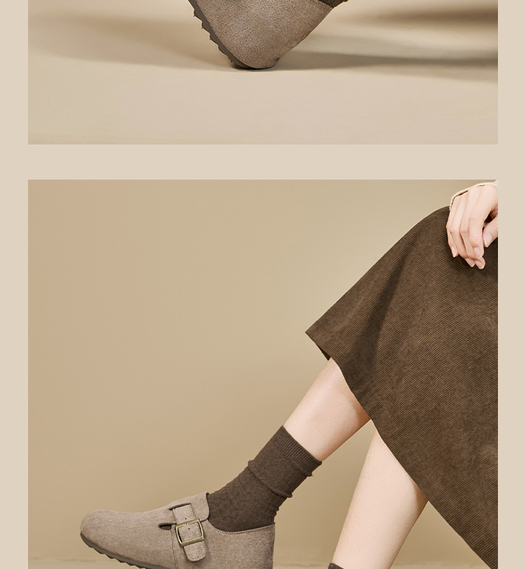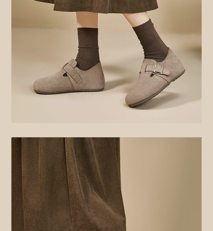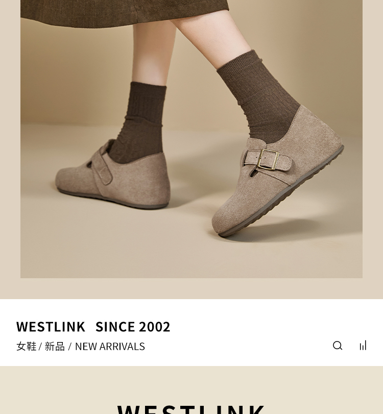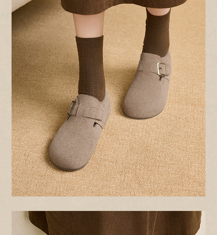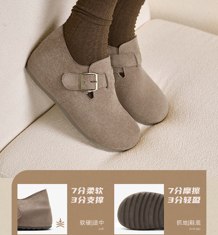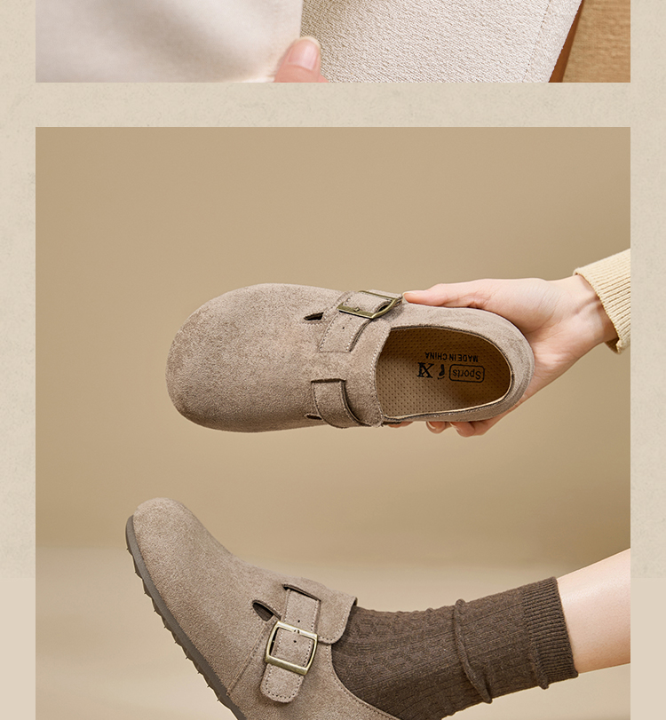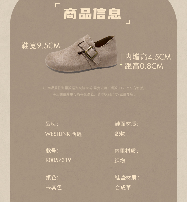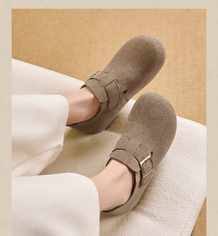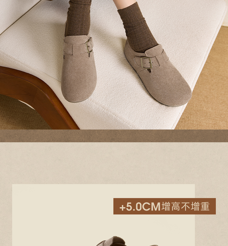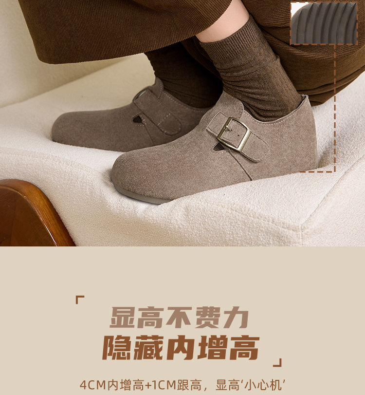 【限时秒杀】西遇内增高勃肯鞋女新款秋季百搭复古全包软底厚底一脚蹬单鞋K0057319