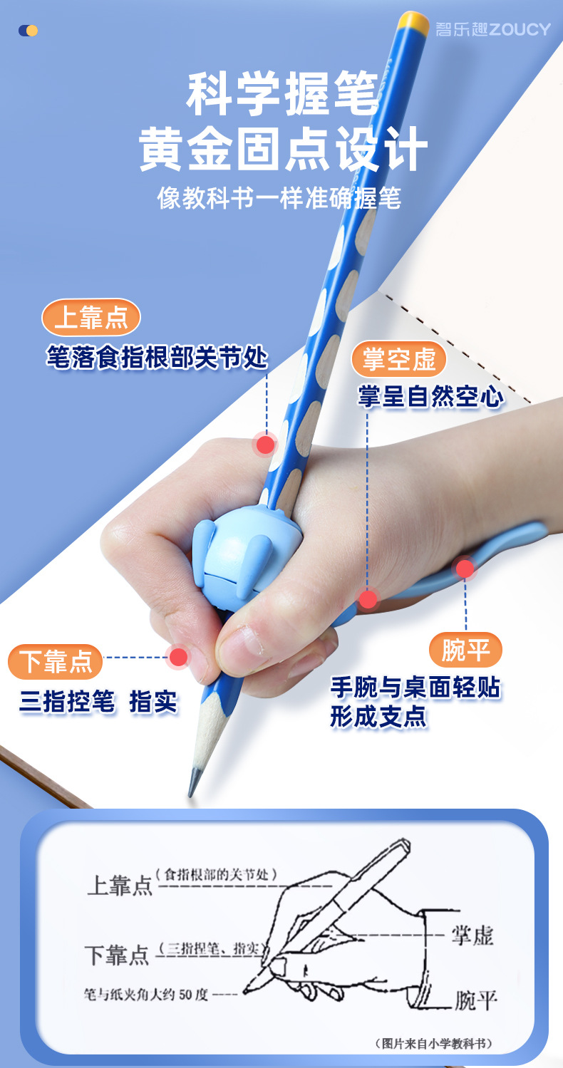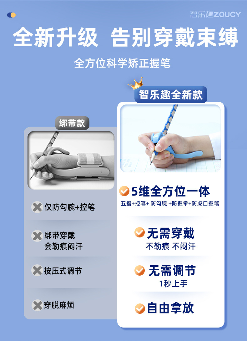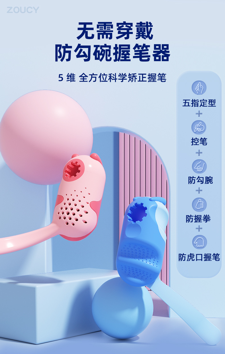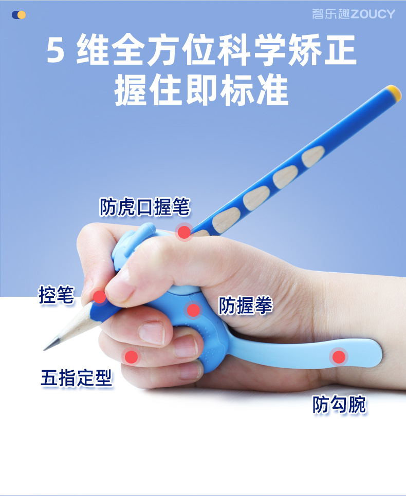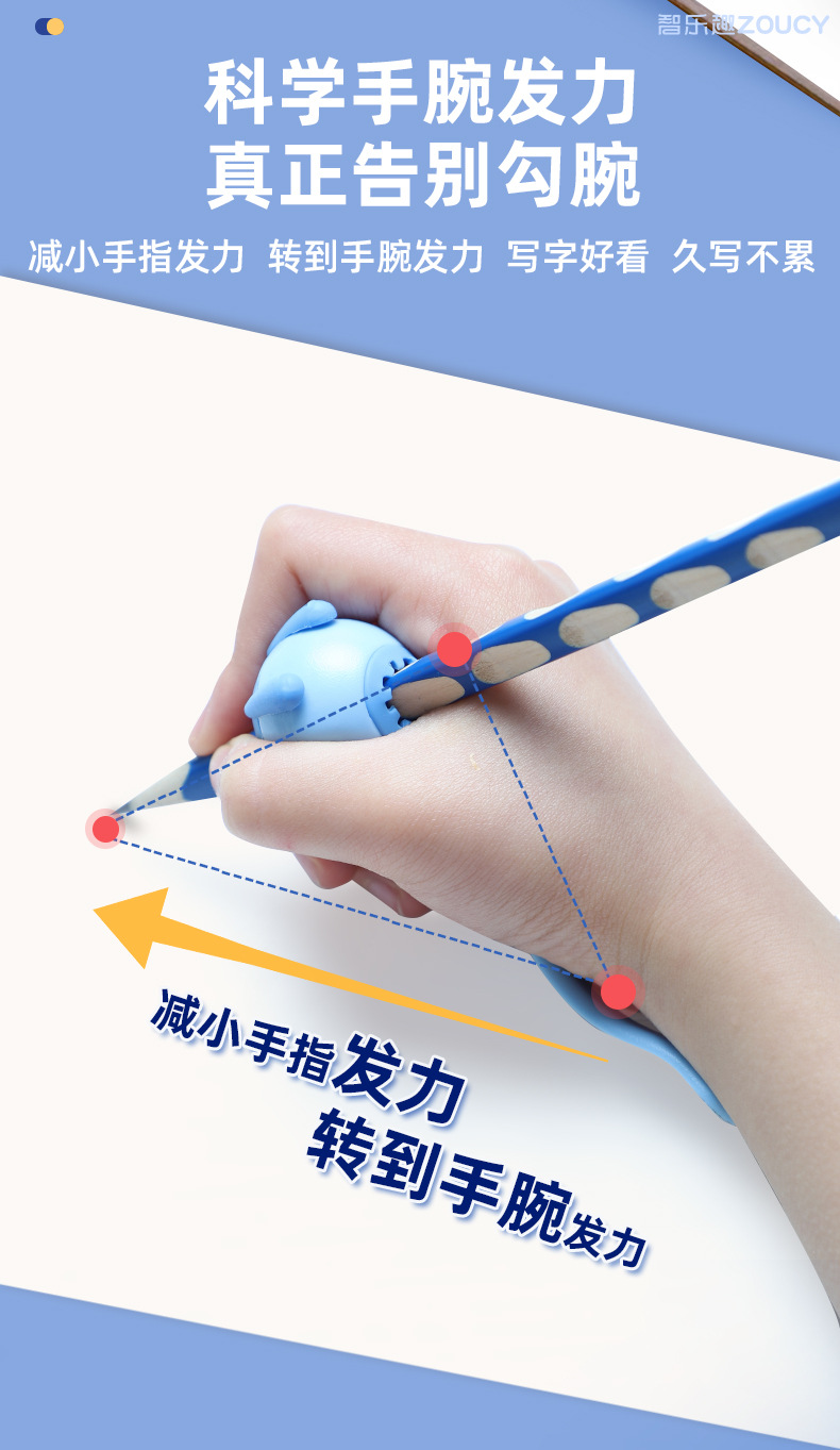【5维全方位矫正!无需穿戴】小学生握笔器 纠正勾腕初学写作业 写字防勾腕拿笔正姿勾手腕纠正器