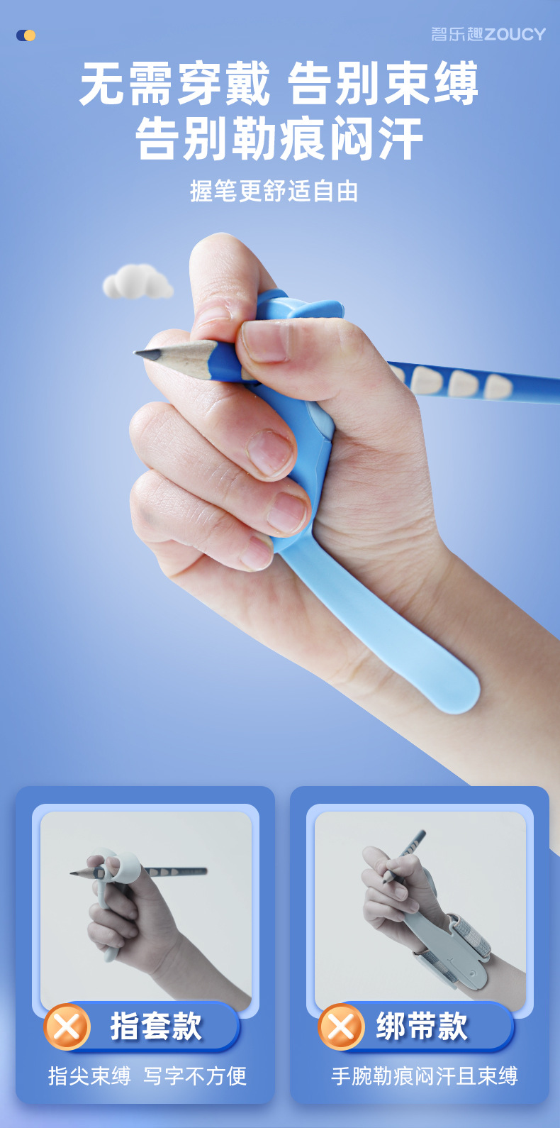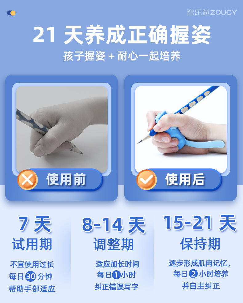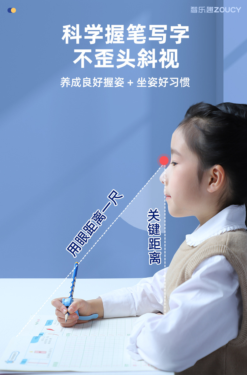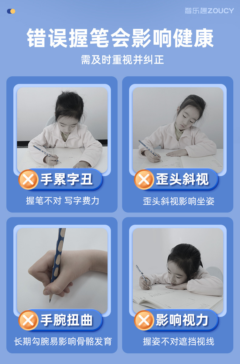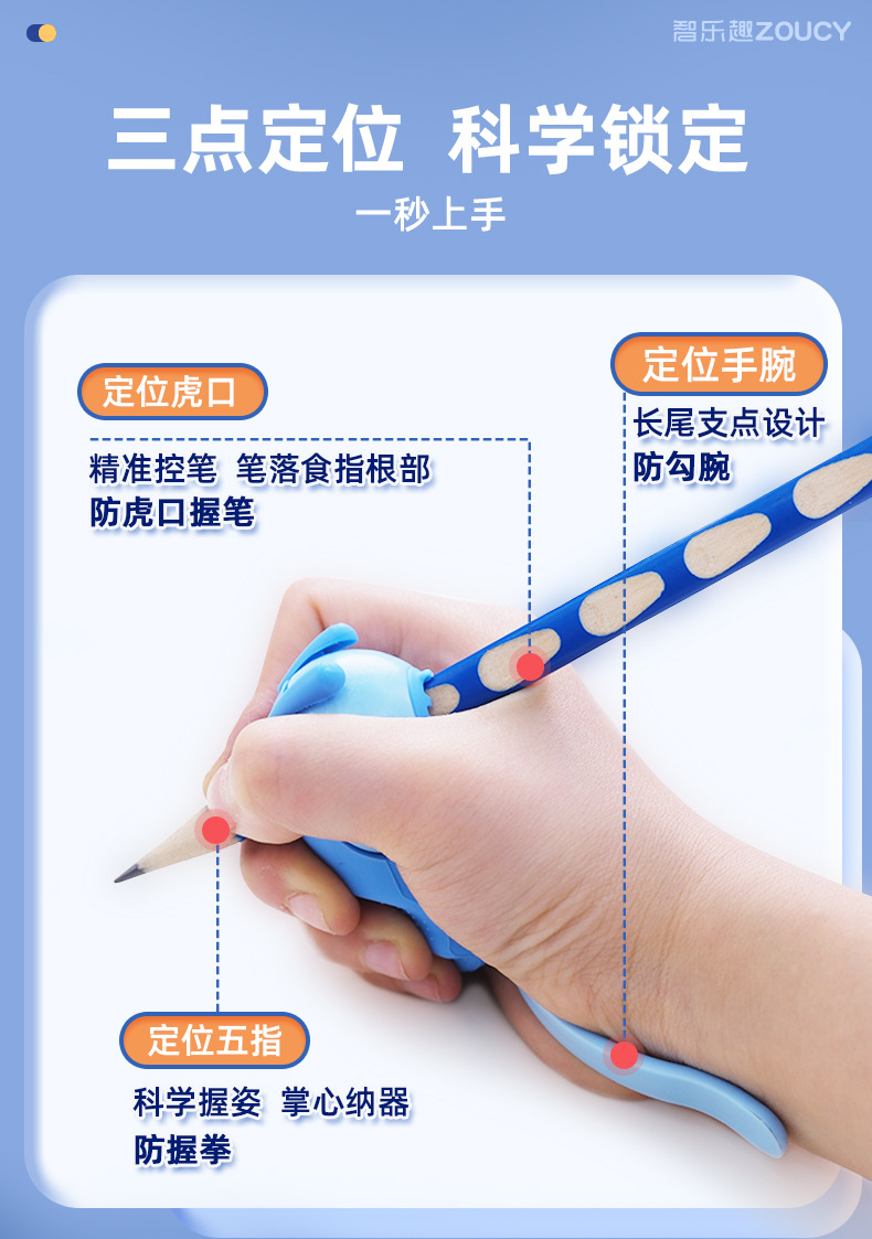 【5维全方位矫正!无需穿戴】小学生握笔器 纠正勾腕初学写作业 写字防勾腕拿笔正姿勾手腕纠正器