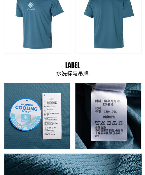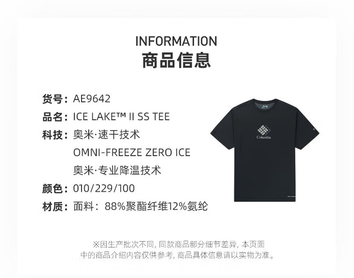 哥伦比亚男式冰感速干短袖T恤AE9642 100/336