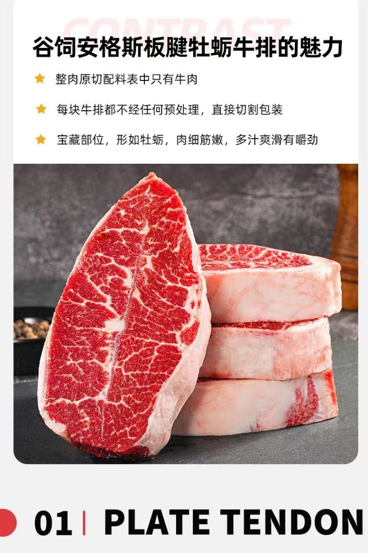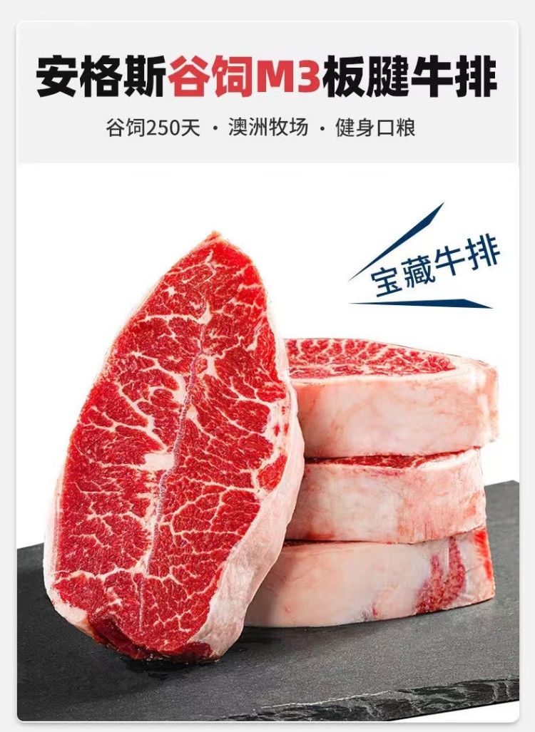 澳洲甄选M3+板腱牛排1.0KG
