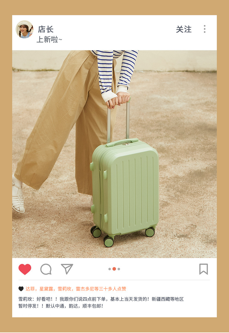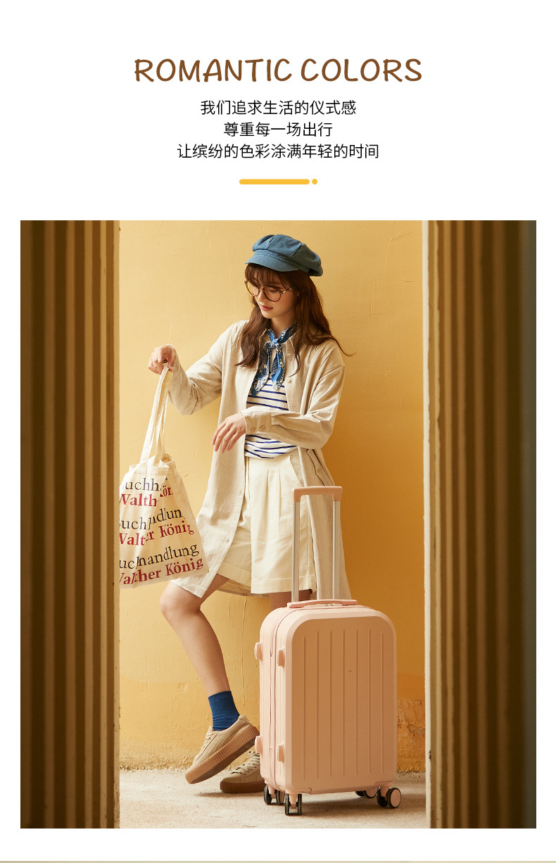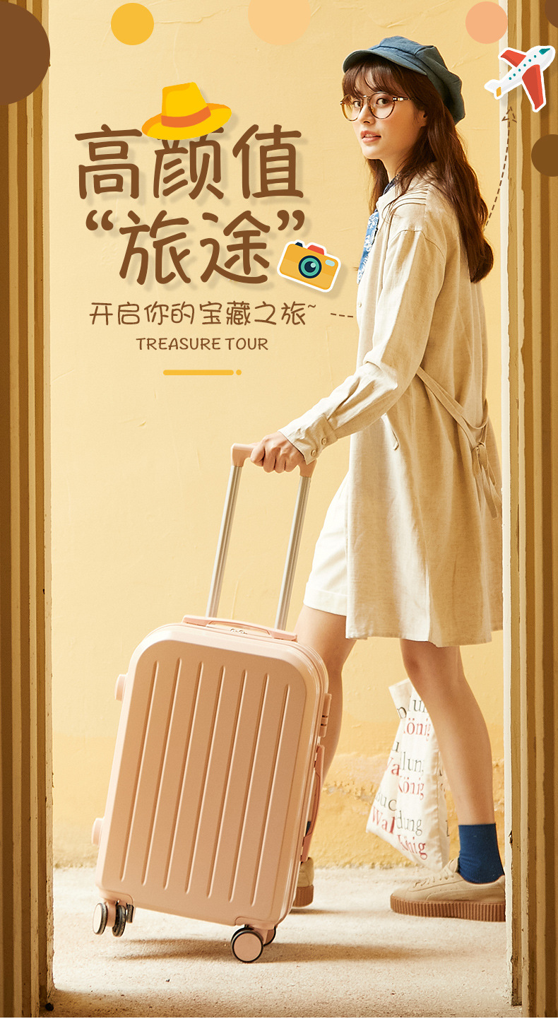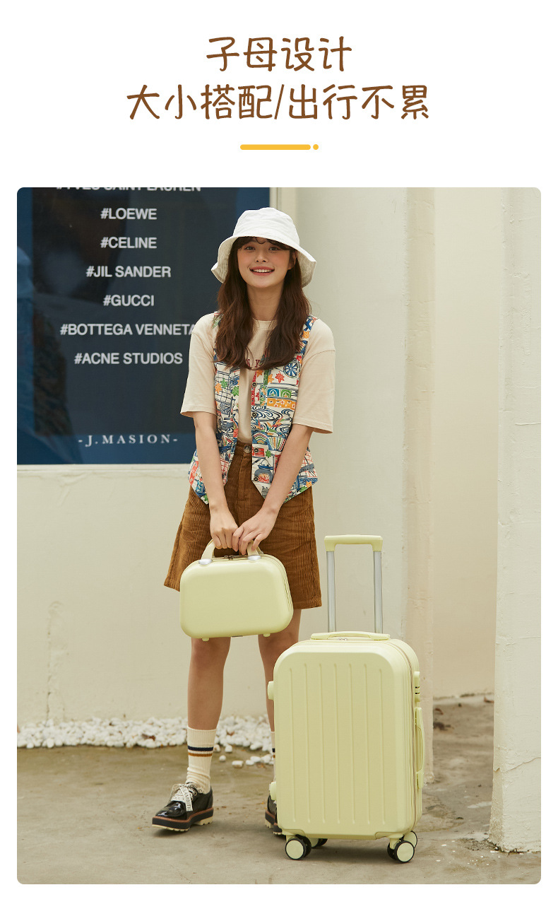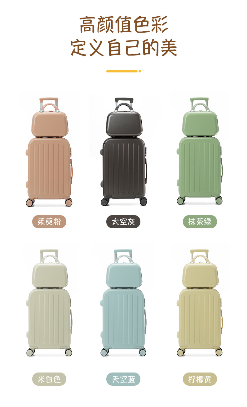 自然醒糖果色行李箱万向轮轻便粉色登机箱拉杆密码登机箱网红新款子母箱