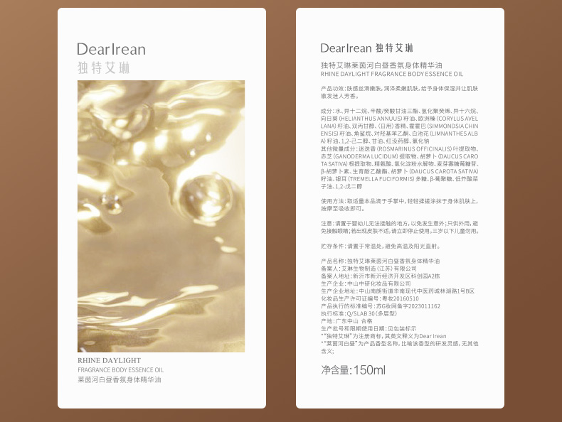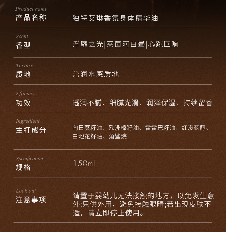 【赠沐浴露50ml】独特艾琳香氛身体精华油