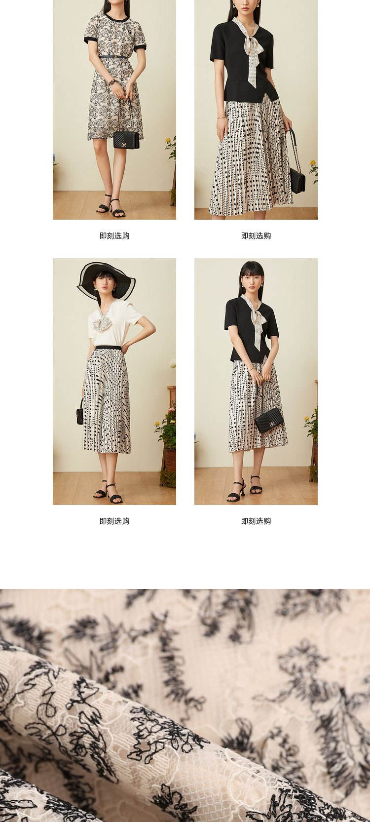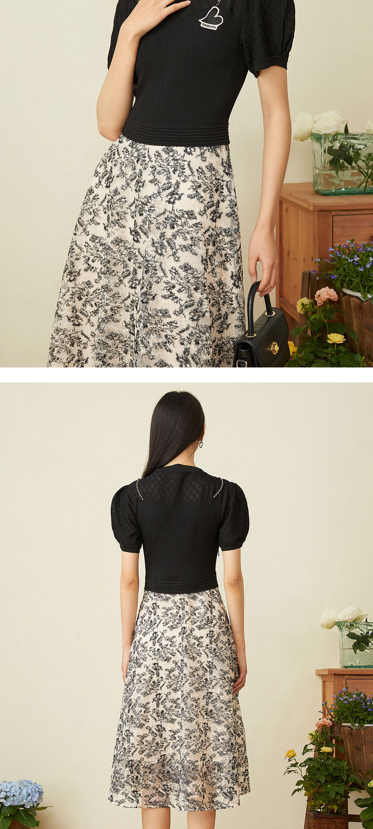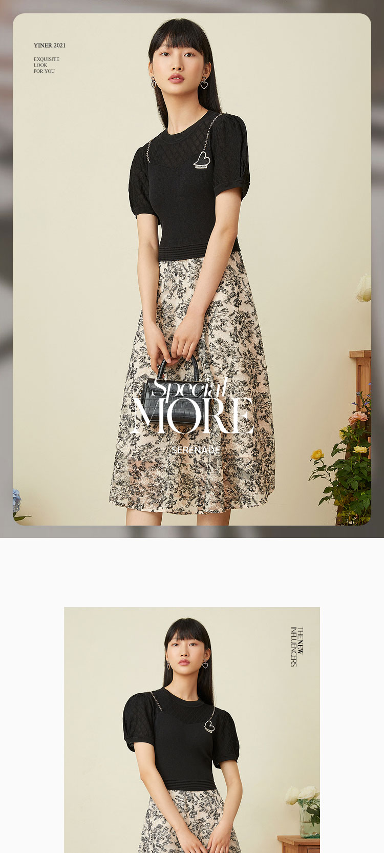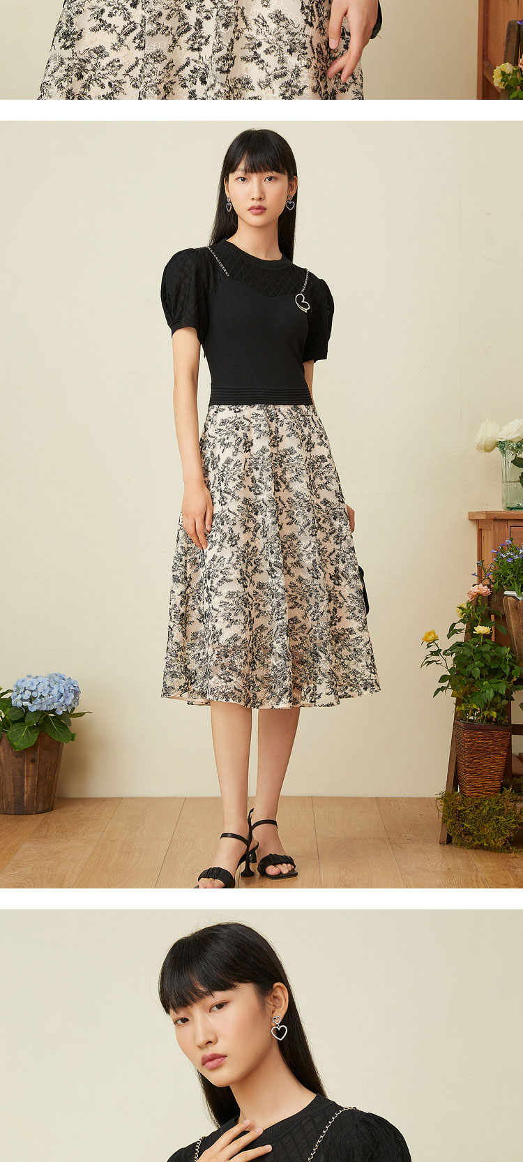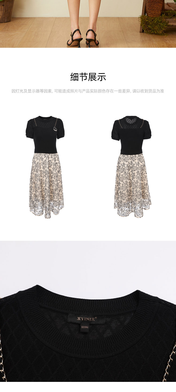 音儿2022夏季新款针织拼接印花网纱连衣裙8c32206820