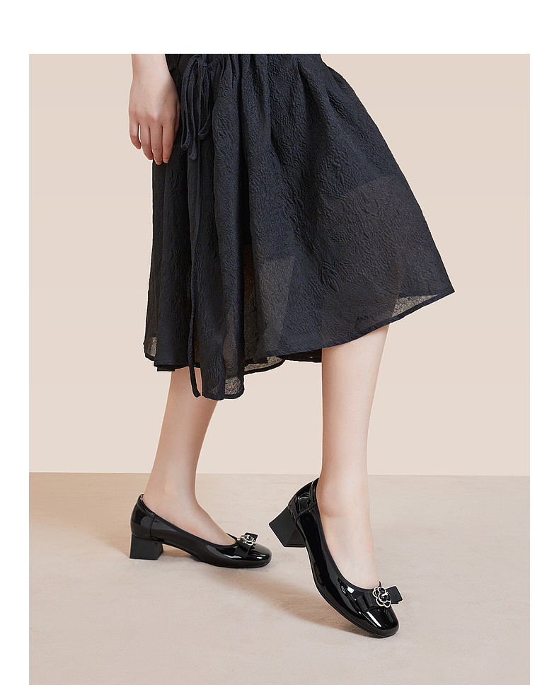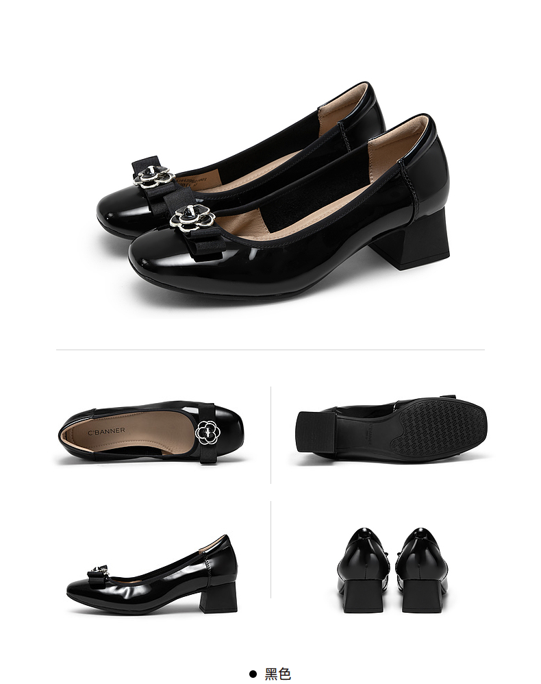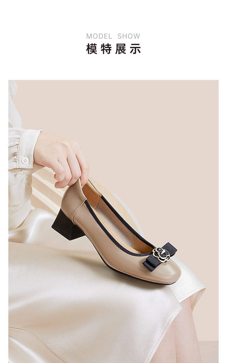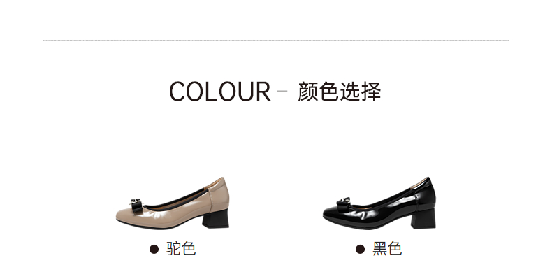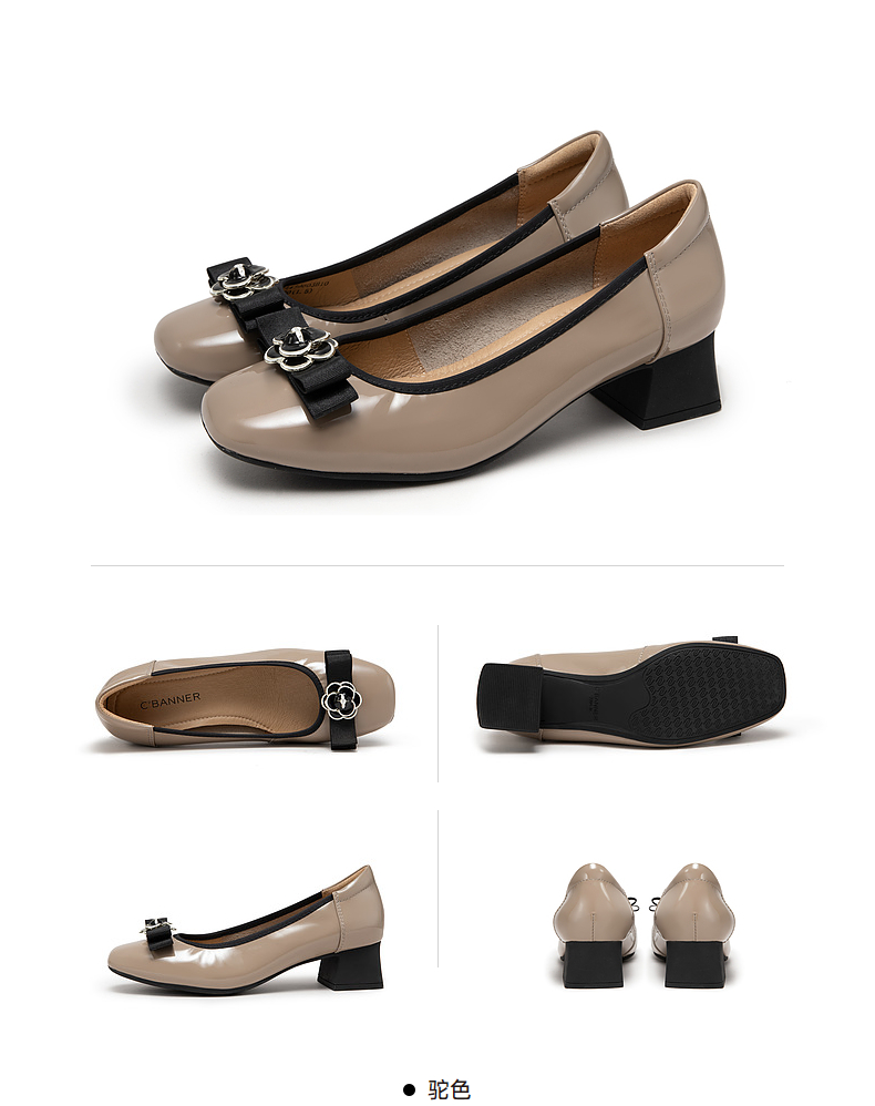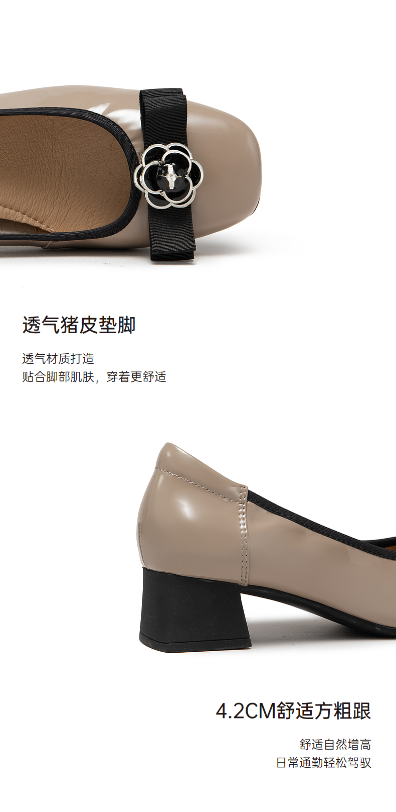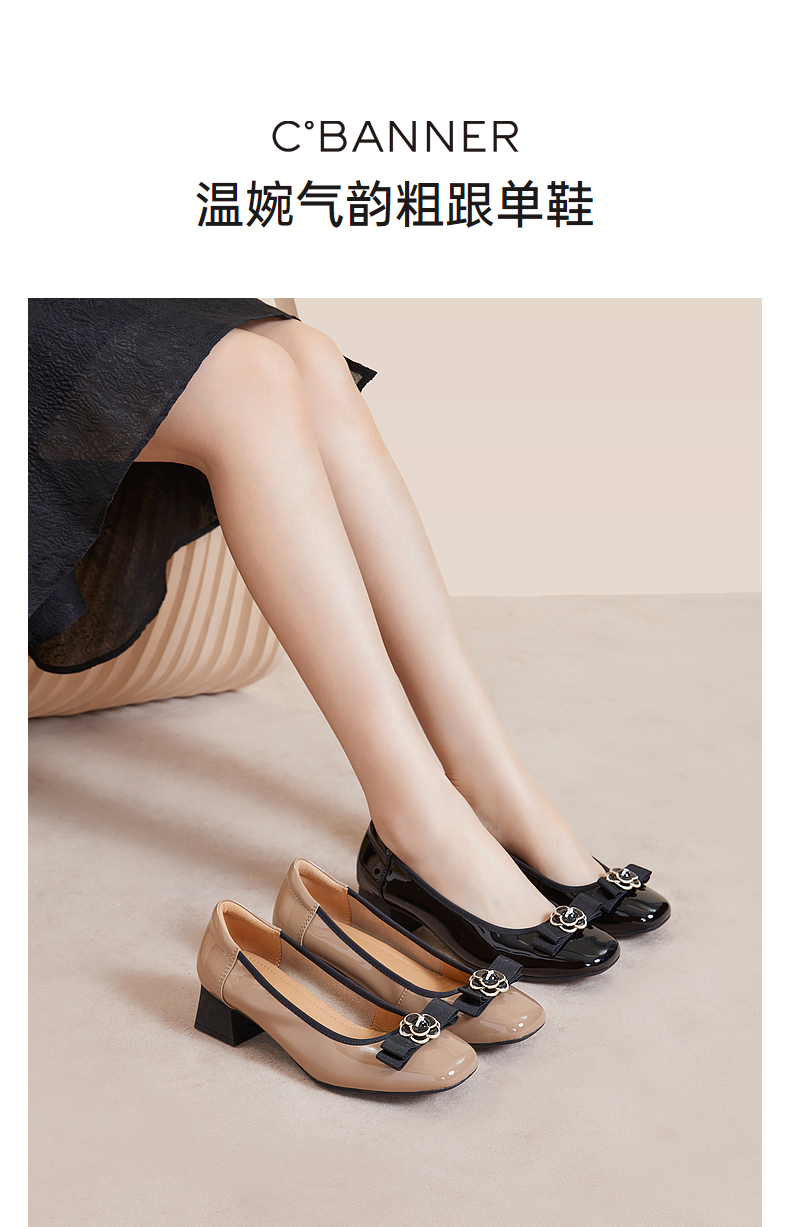 千百度中跟漆皮浅口单鞋女秋季方跟真皮小香风晚晚温柔鞋A24439603