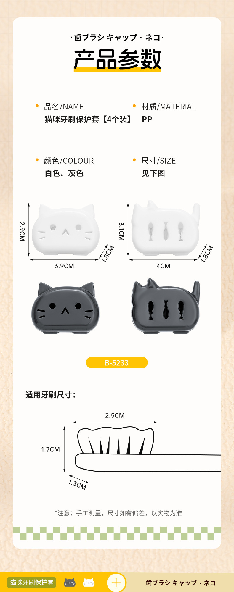 家用便携卡通牙刷保护套牙刷收纳旅行刷头套保护帽盒猫咪 商品图7