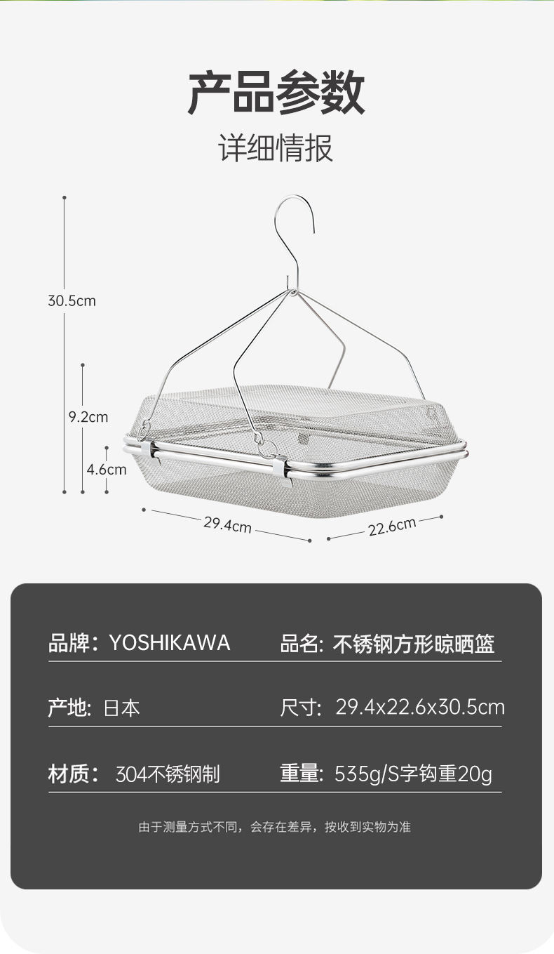 日本吉川304不锈钢风干网挂吊收纳架29cm