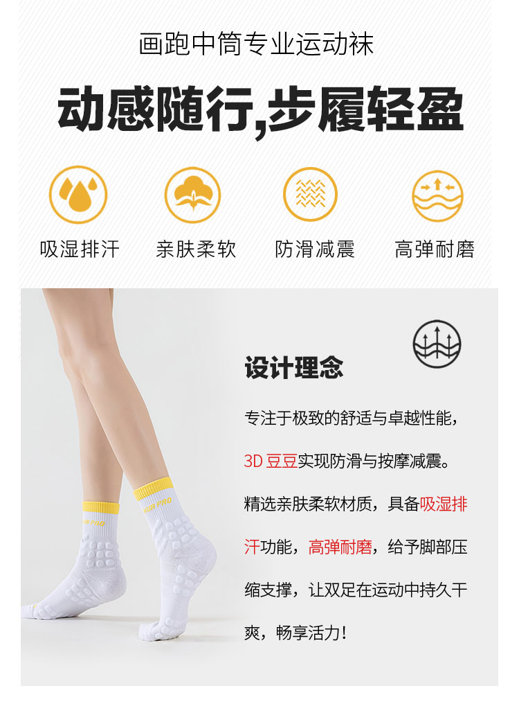 【顺丰发货】HUAPAO画跑3D豆豆中筒专业运动跑步袜