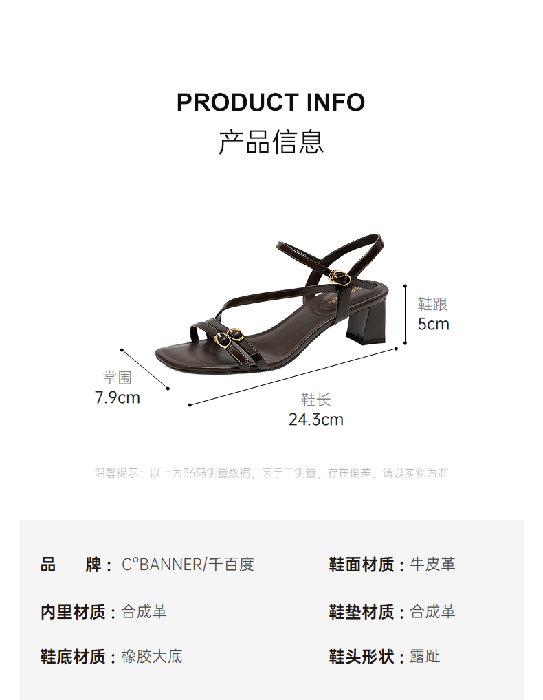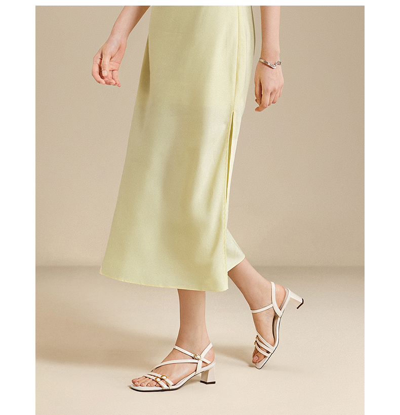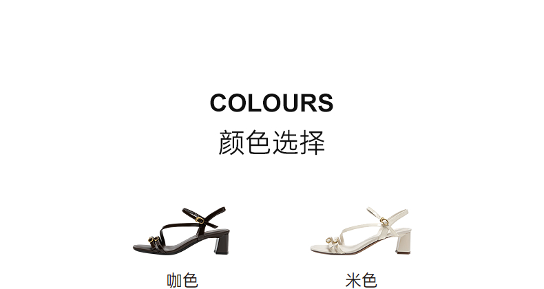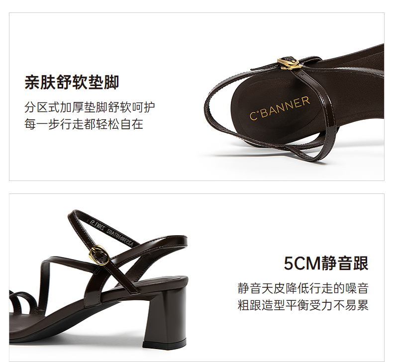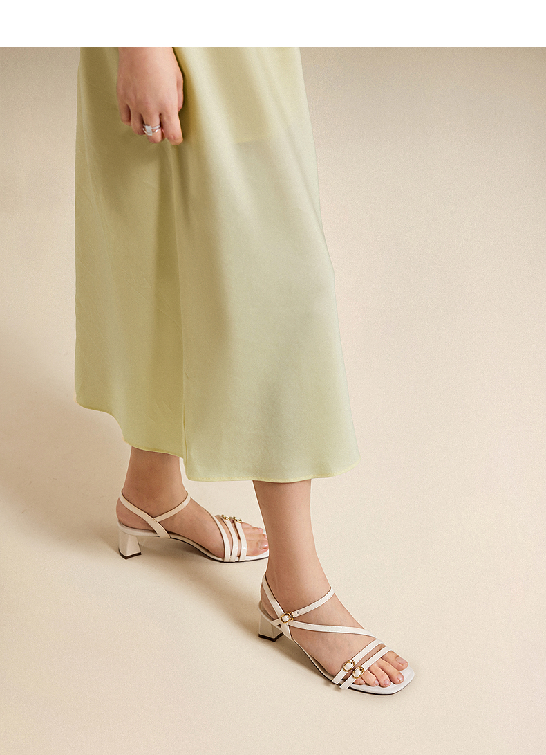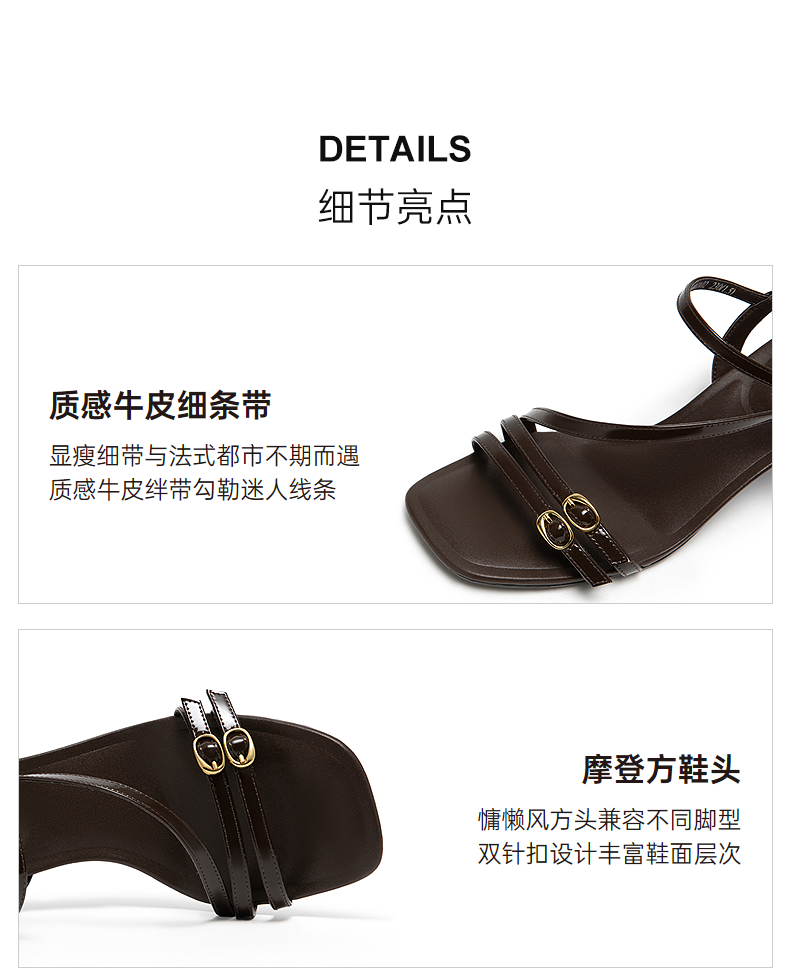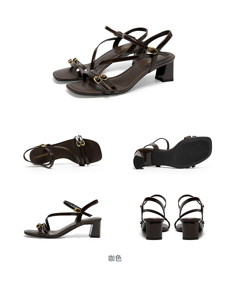 【静音系列】千百度牛皮细带时装凉鞋女粗高跟凉鞋A25386107