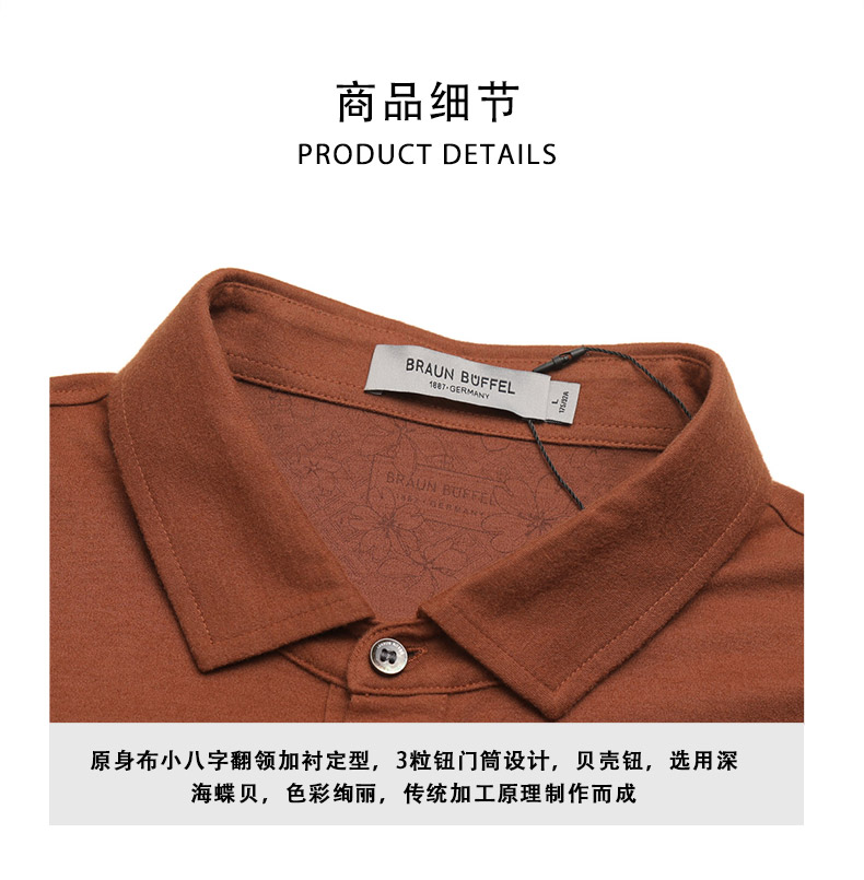 布兰施秋冬火山岩羊毛长袖翻领T恤