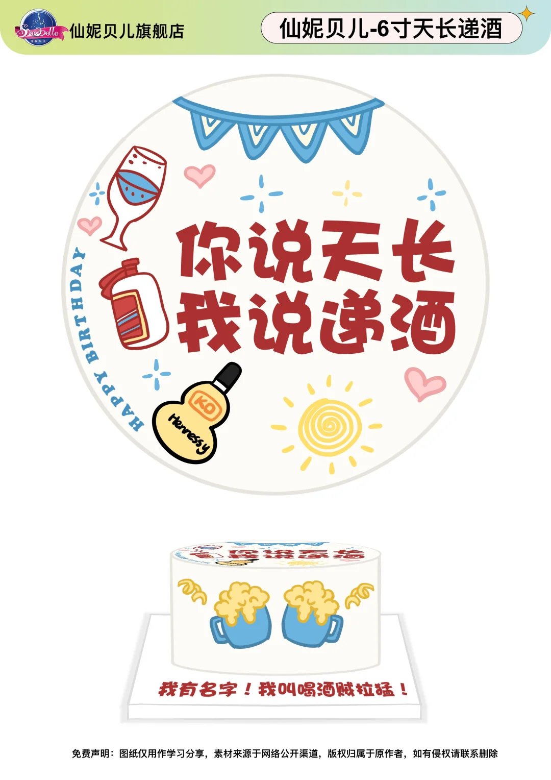 天长递酒喝酒酒友手绘卡通蛋糕-低糖处理无添加