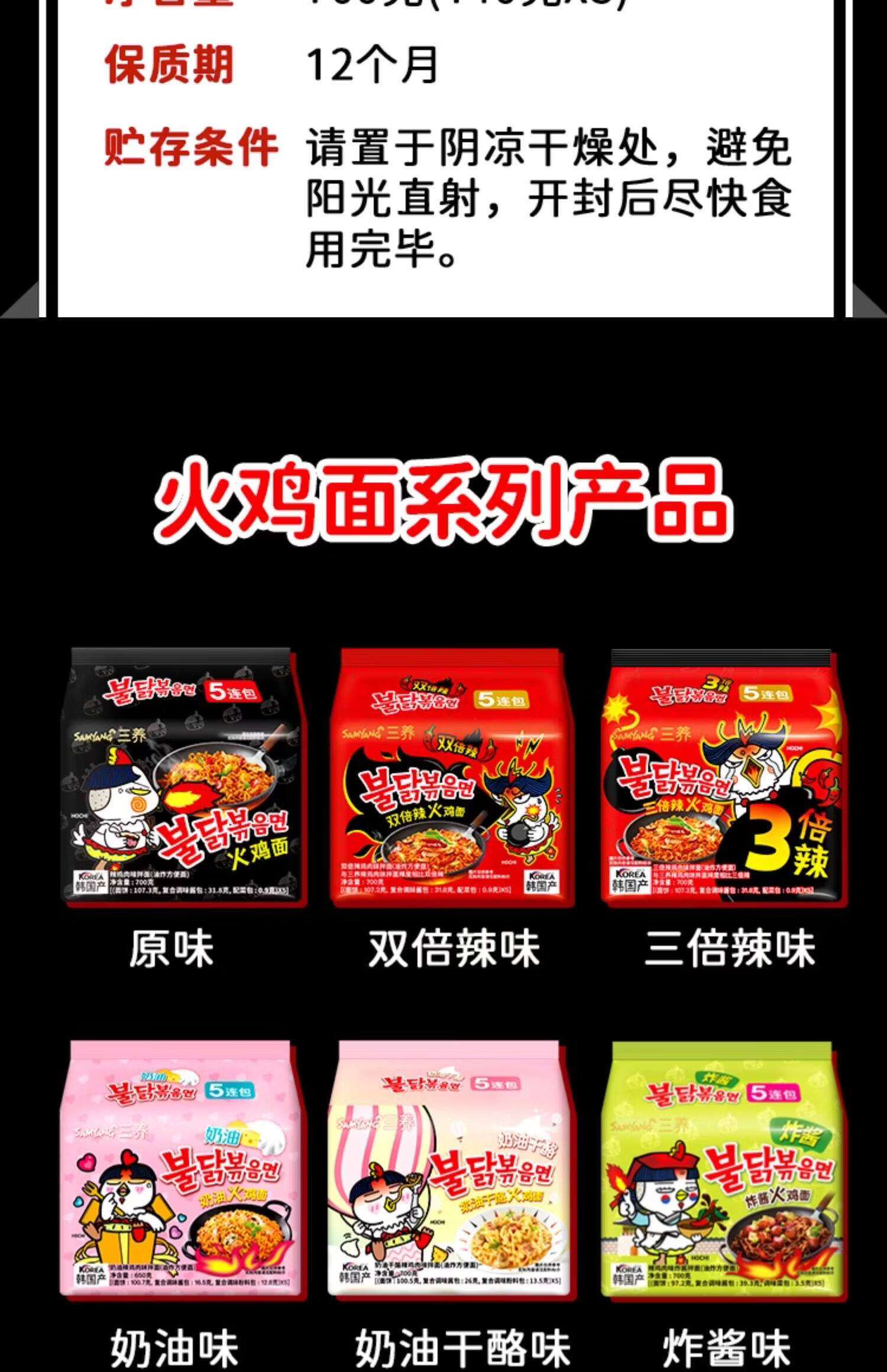 5连包 三养 火鸡面 辣鸡肉味拌面 140g*5包/袋