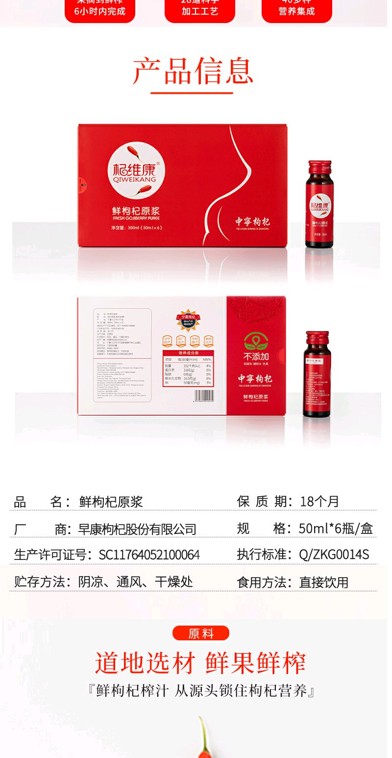 【中宁新鲜枸杞原浆】3盒装杞维康中宁枸杞原浆50ml*6瓶*3盒原产地直发能喝的“护肤品”,补气色,养肝肾,明目效果立竿见影!坚持喝告别亚健康!