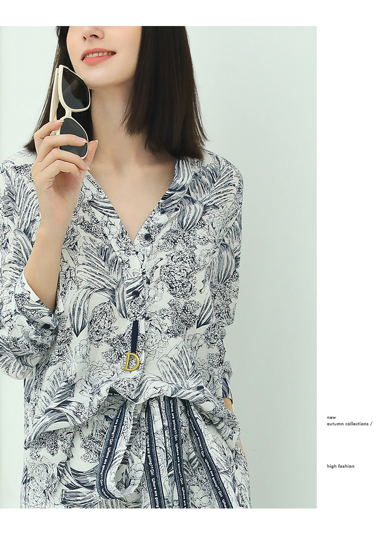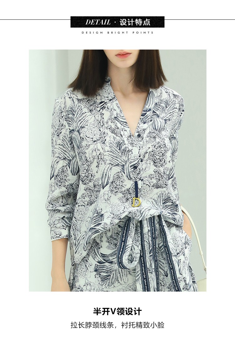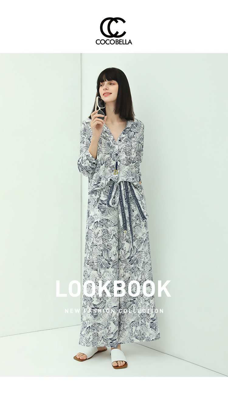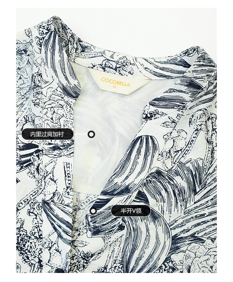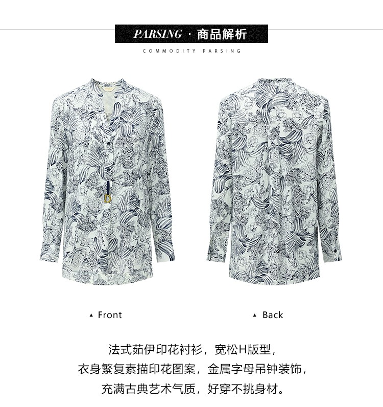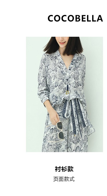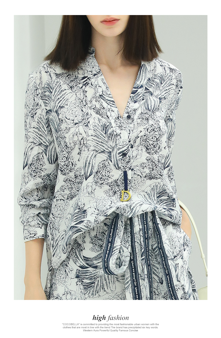 COCOBELLA艺术感素描印花时尚衬衫女优雅气质立领衬衣SR528