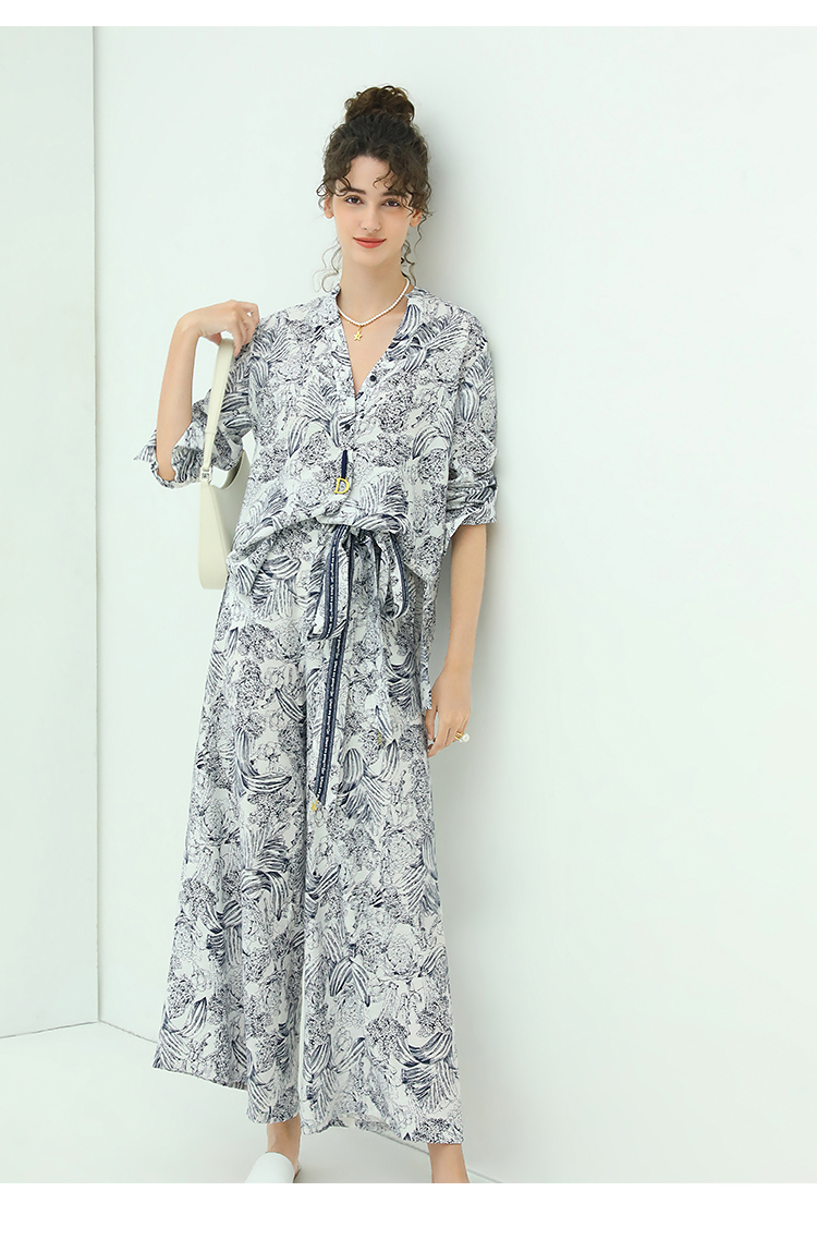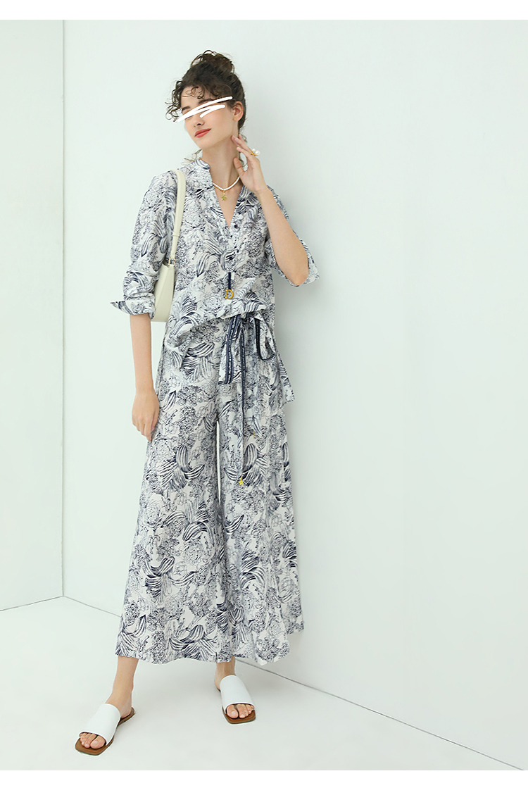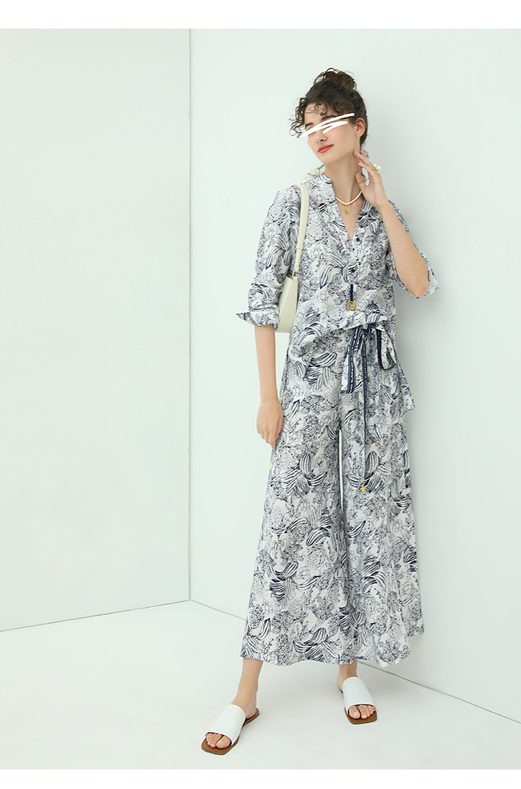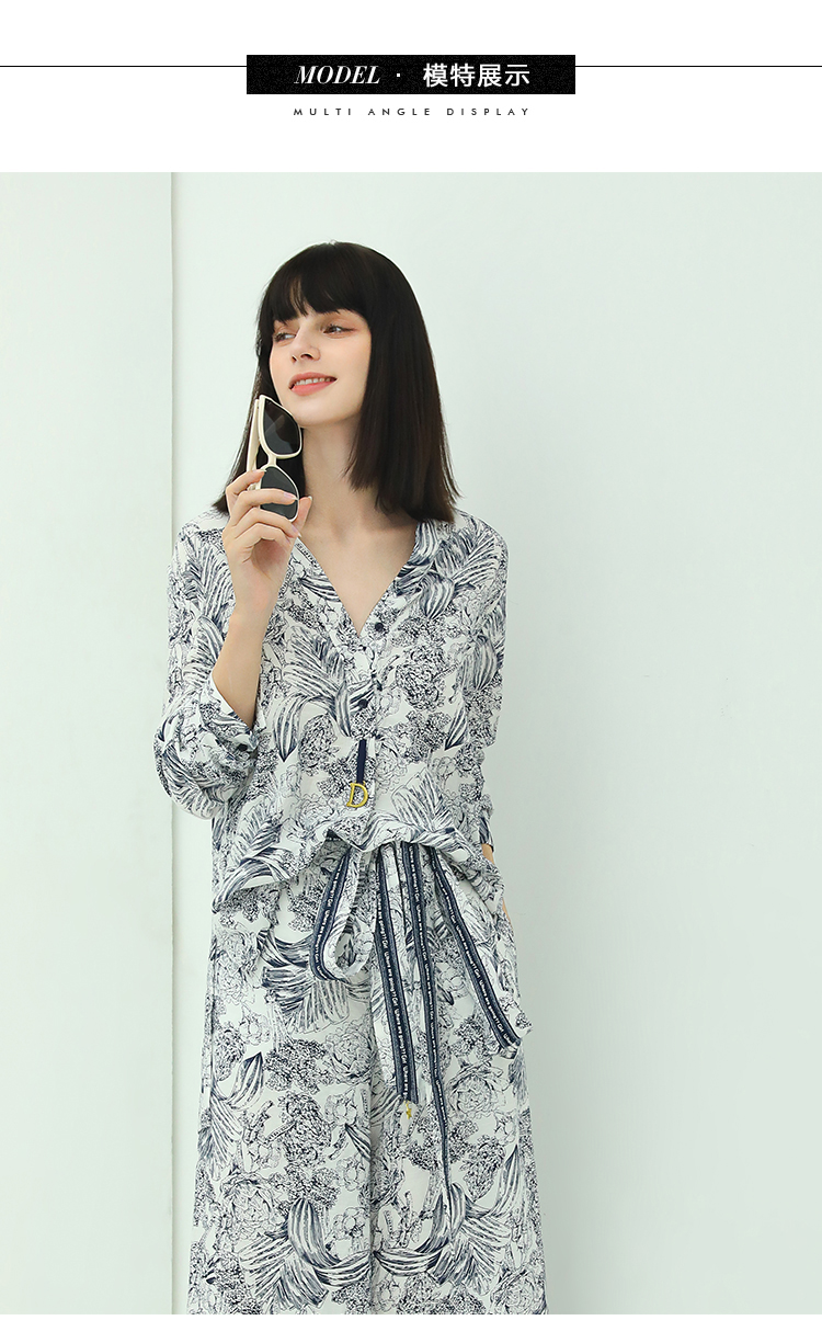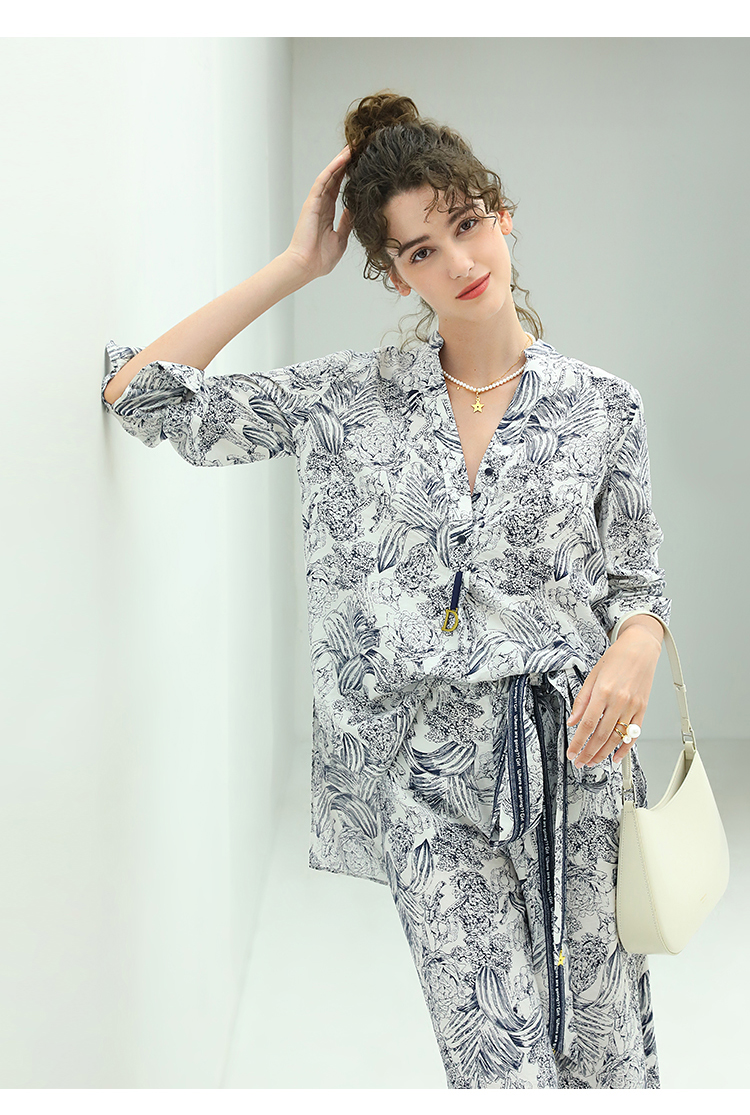 COCOBELLA艺术感素描印花时尚衬衫女优雅气质立领衬衣SR528