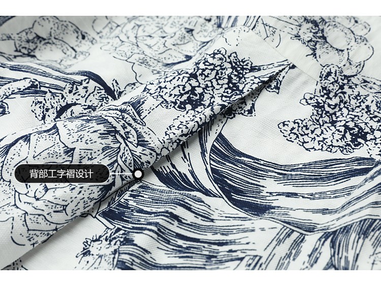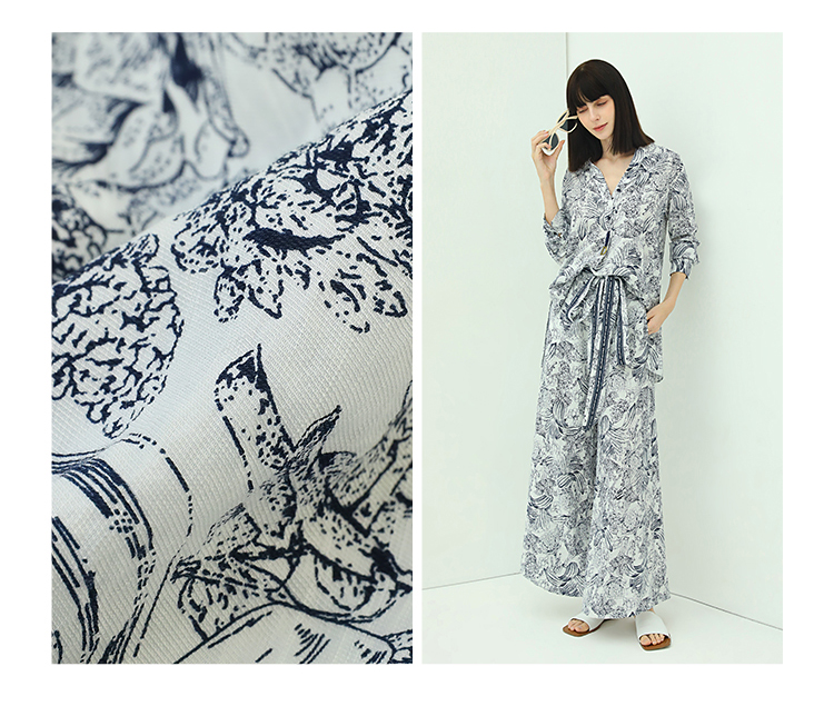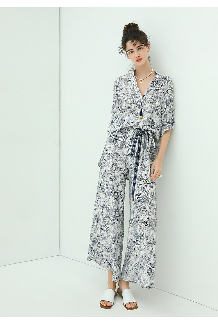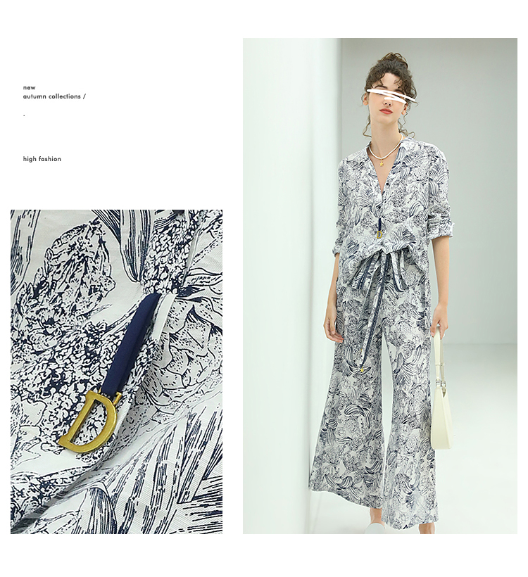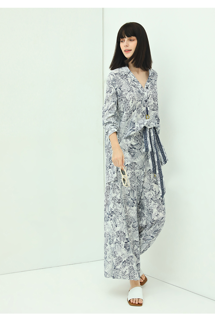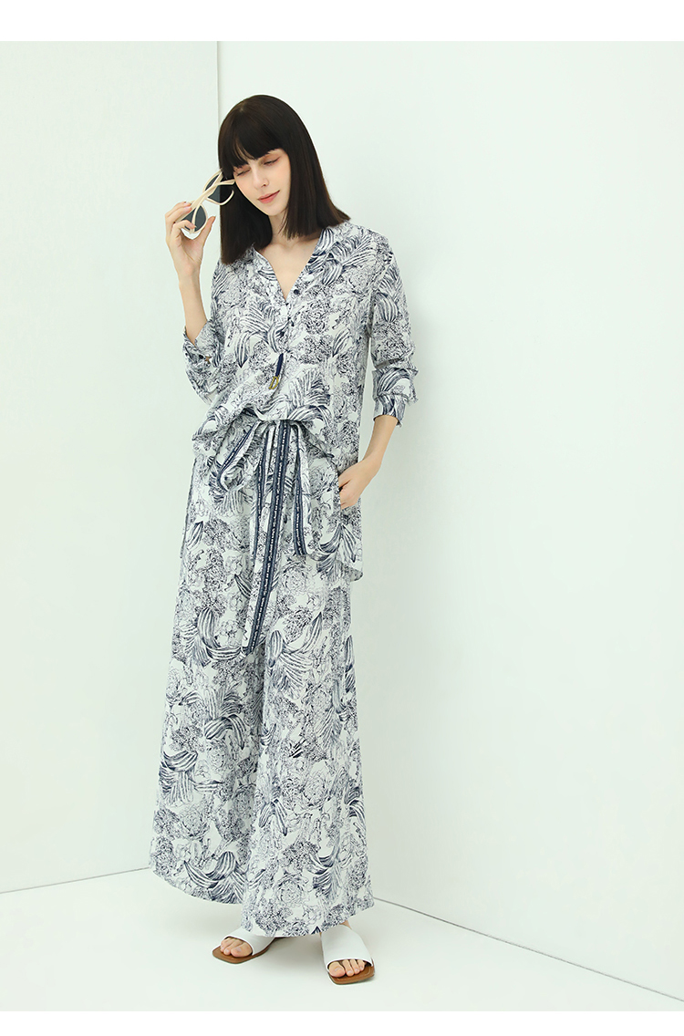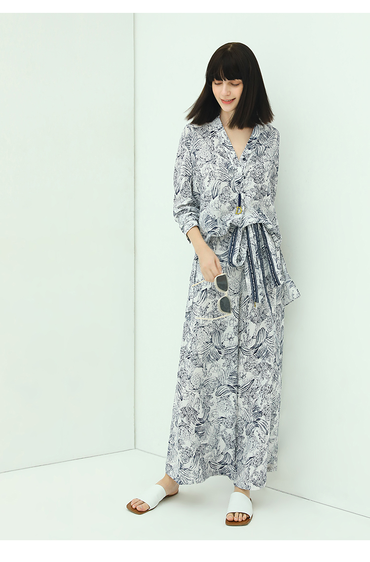 COCOBELLA艺术感素描印花时尚衬衫女优雅气质立领衬衣SR528