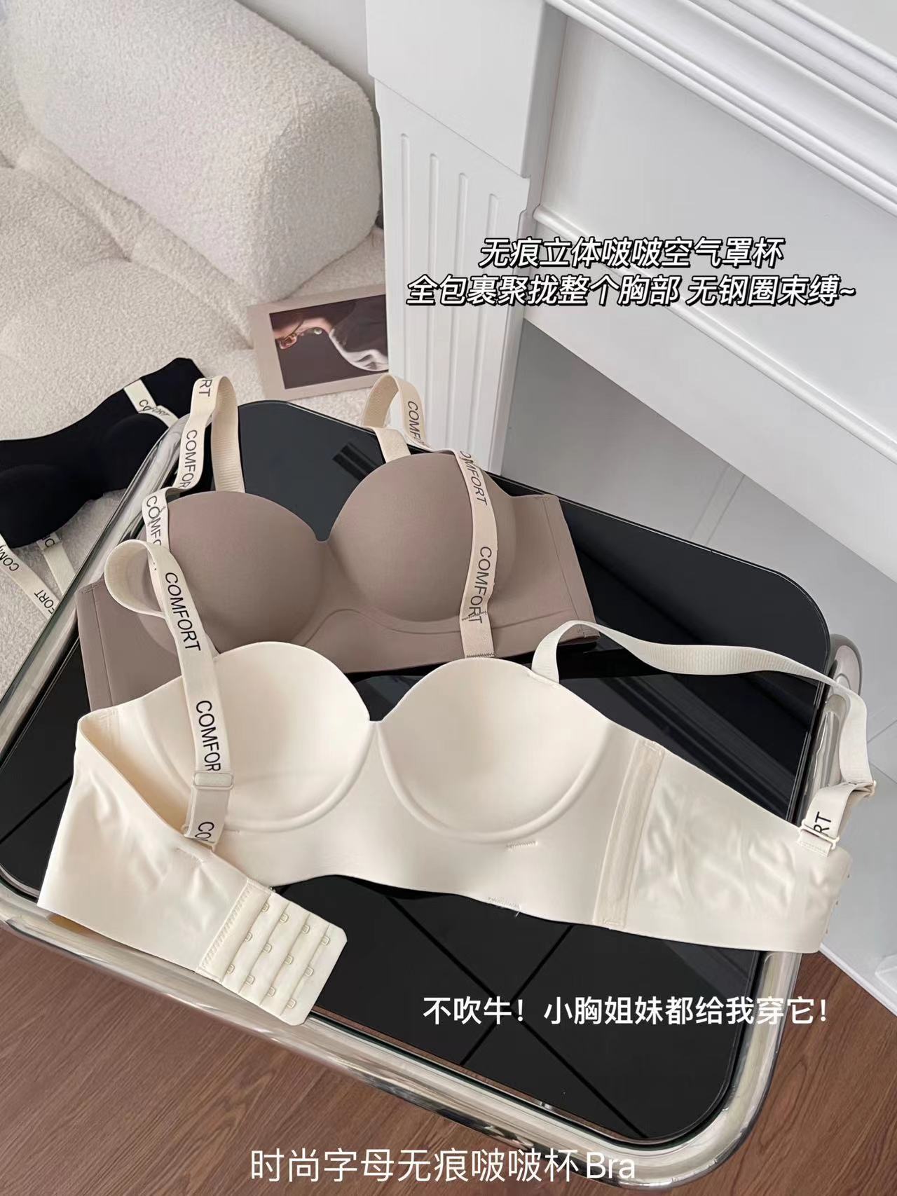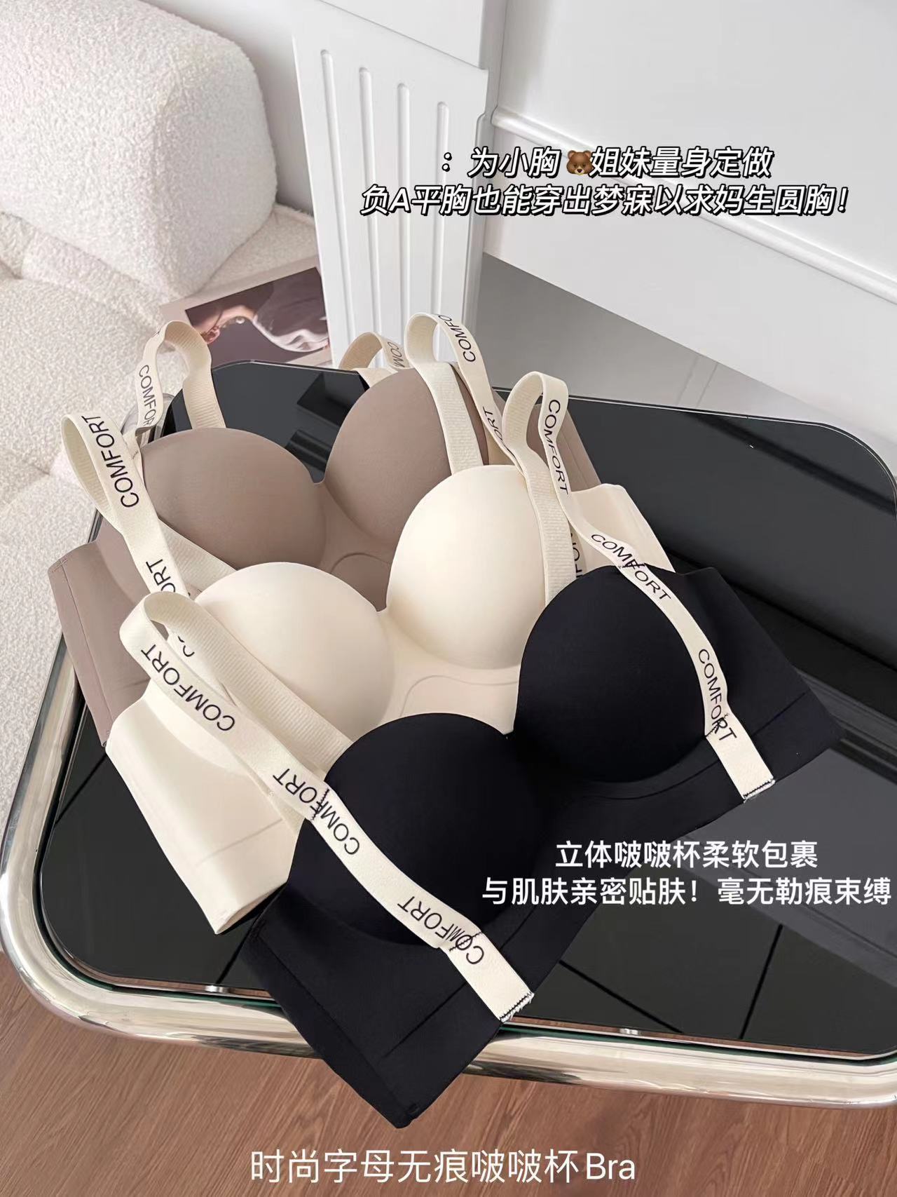【3D圆球杯!无痕小“聚”蛋】新款时尚字母无痕啵啵杯Bra,简约舒适,时尚无痕。上托收副乳,优雅聚拢。女性魅力,享受舒适,尽显女性优雅!