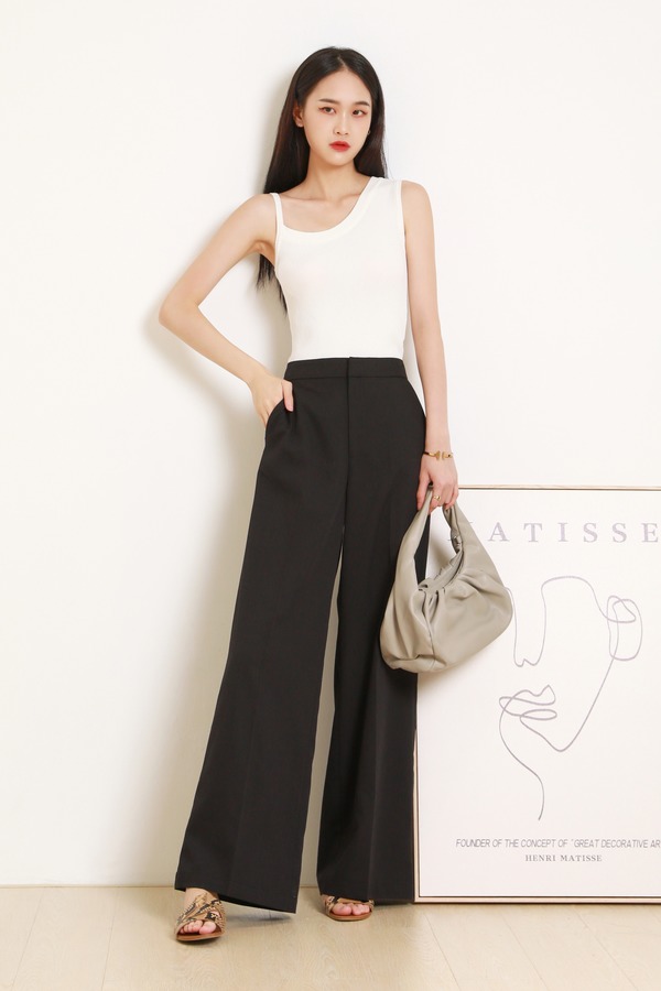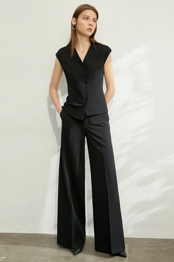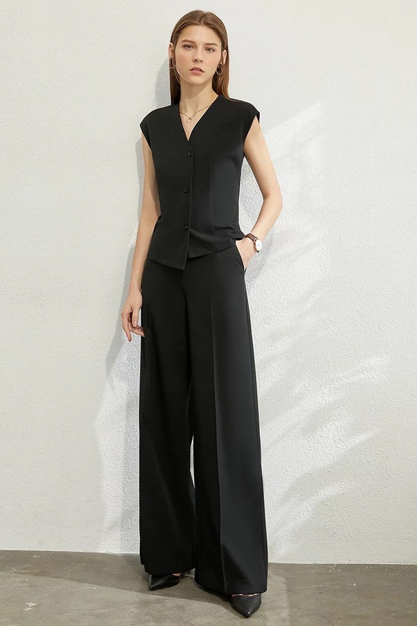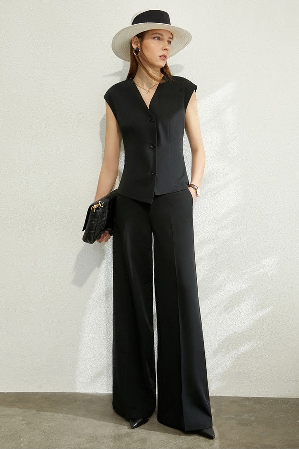 AMII/艾米 V领无袖马甲外套长裤套装 12031