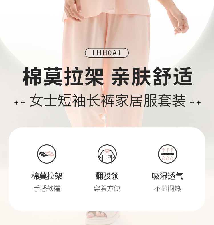 都市丽人女士莫代尔短袖套装薄棉莫拉架亲情蜜语眠眠衣短袖类LHH0A1