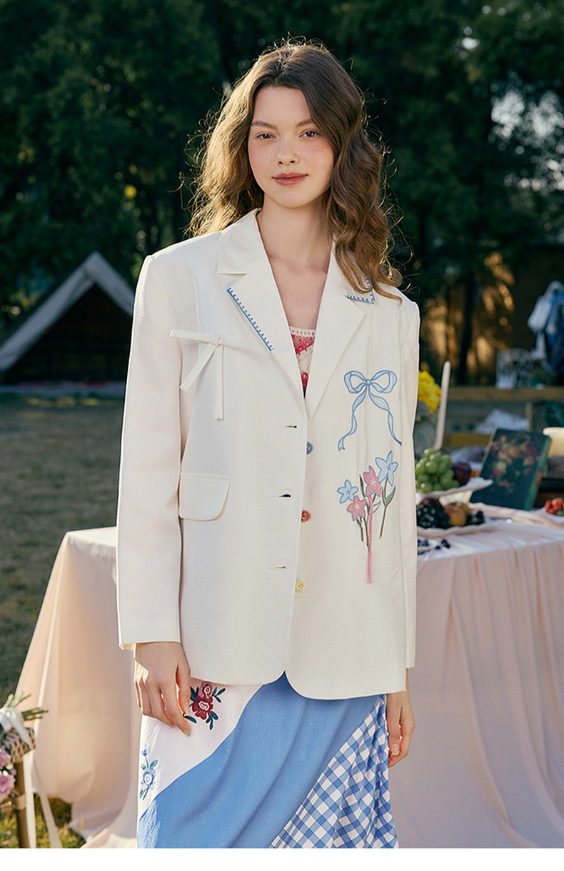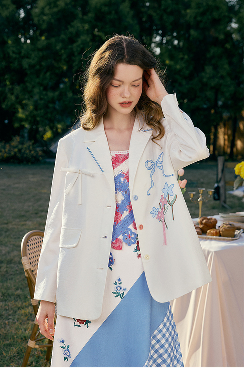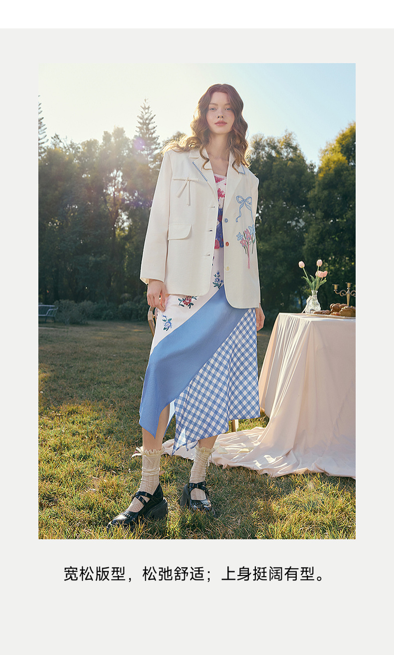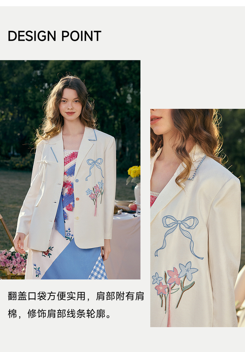 两三事 初曦香宴 2025春季新款小清新流苏绣花西装外套女宽松