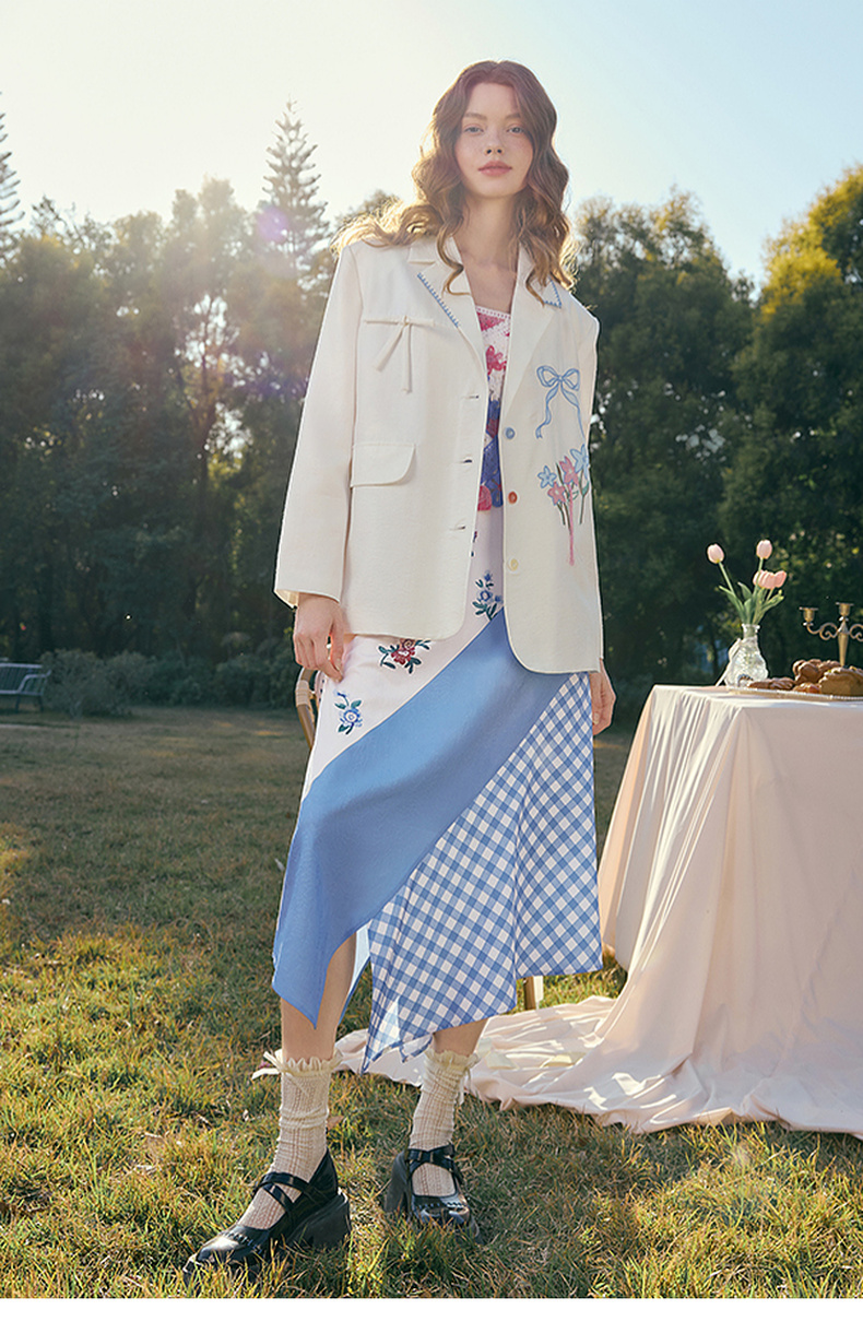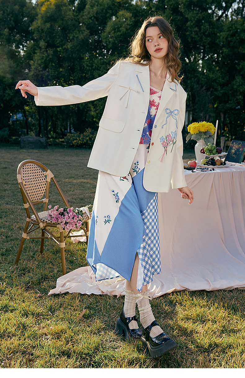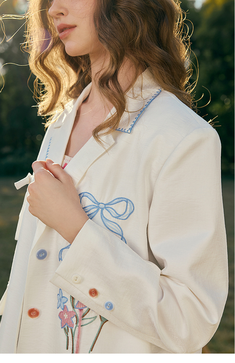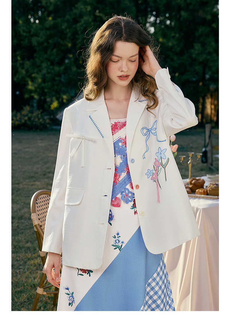 两三事 初曦香宴 2025春季新款小清新流苏绣花西装外套女宽松