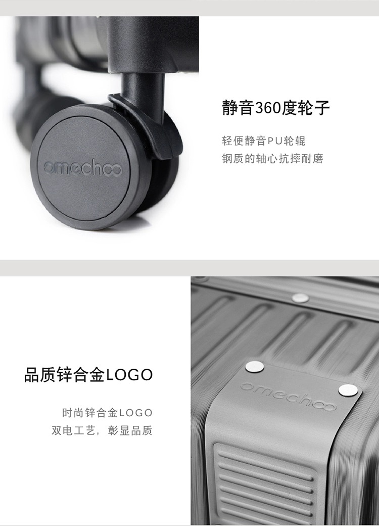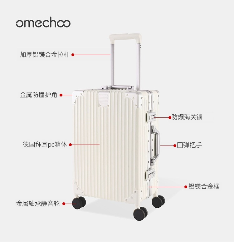 【出行必备】新款日本OMECHOO行李箱多功能铝框拉杆箱静音万向轮商务旅行箱