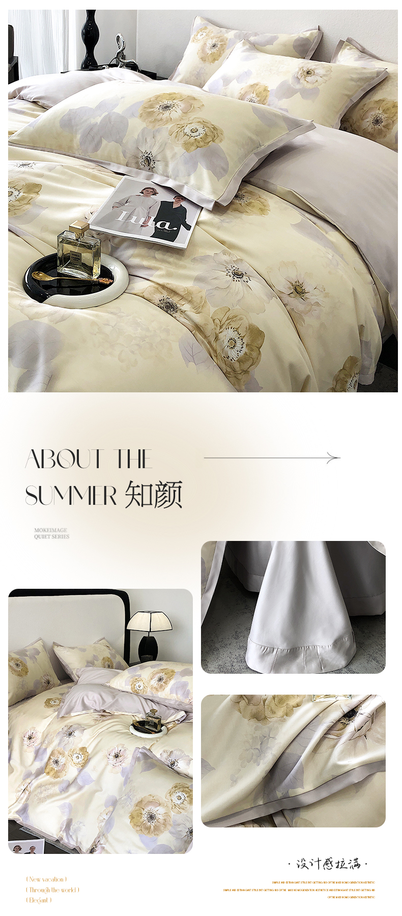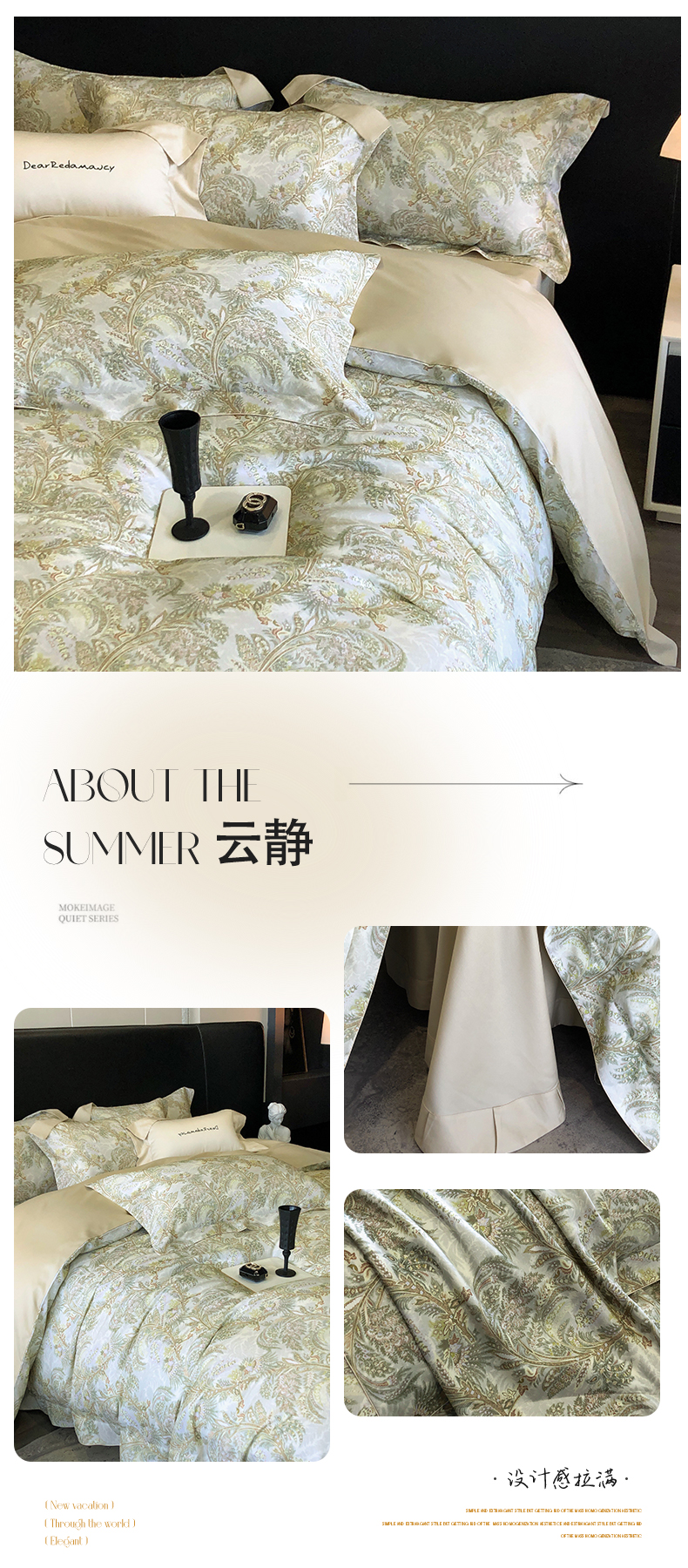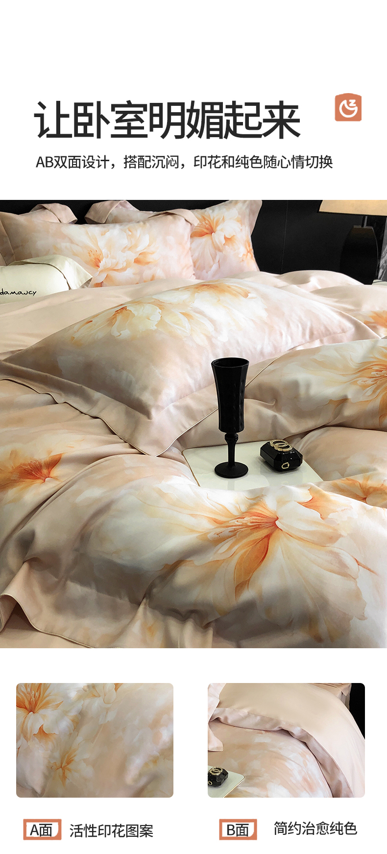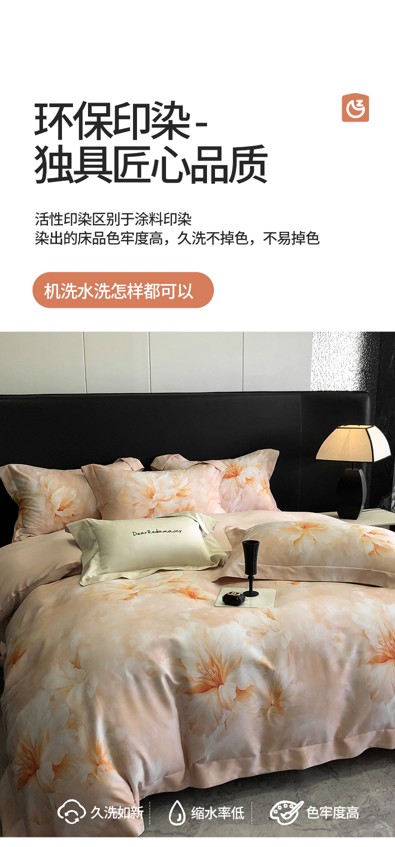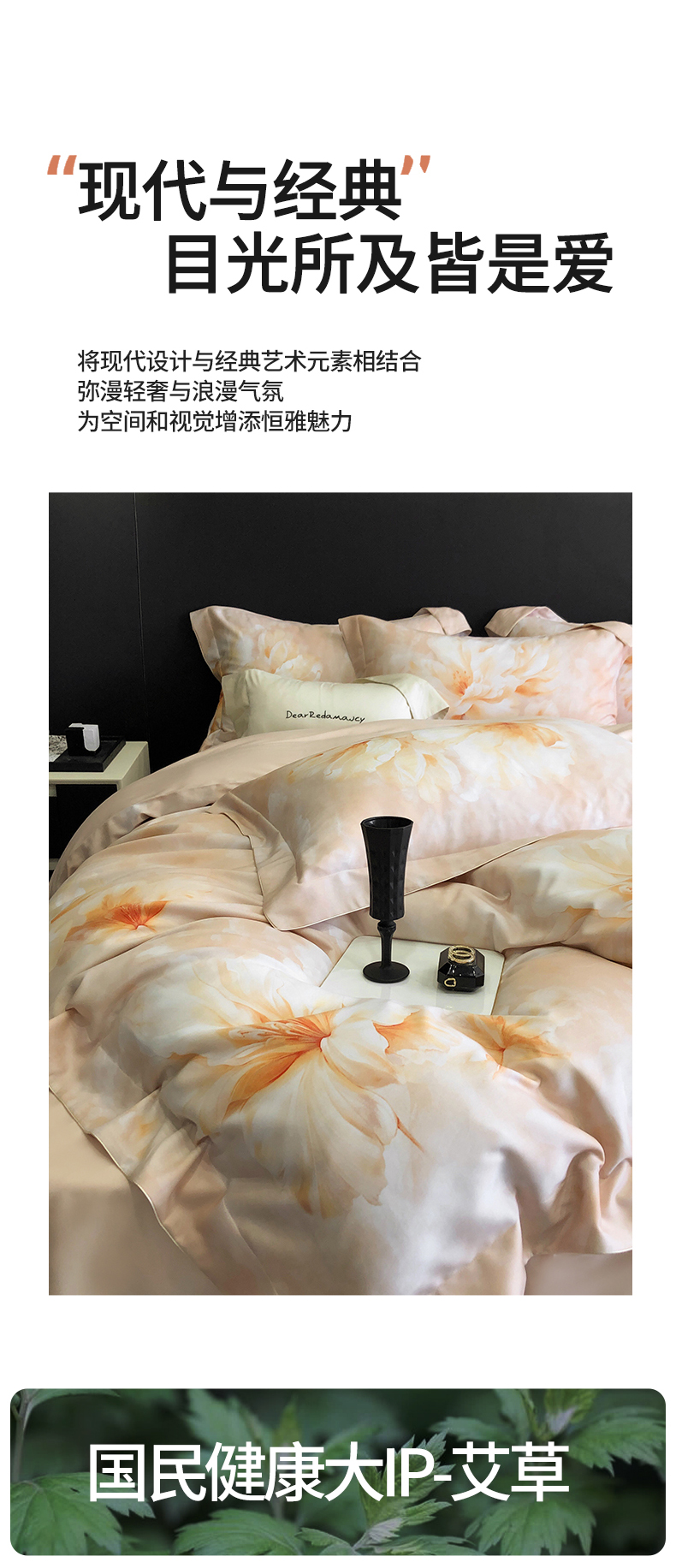 自然醒金太阳艾阳绒艾草天丝棉磨毛四件套轻奢印花被套裸睡床品KY