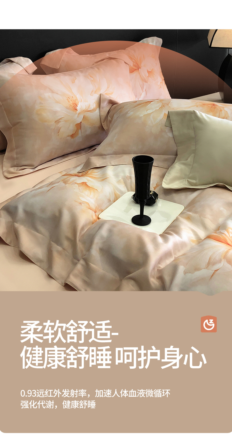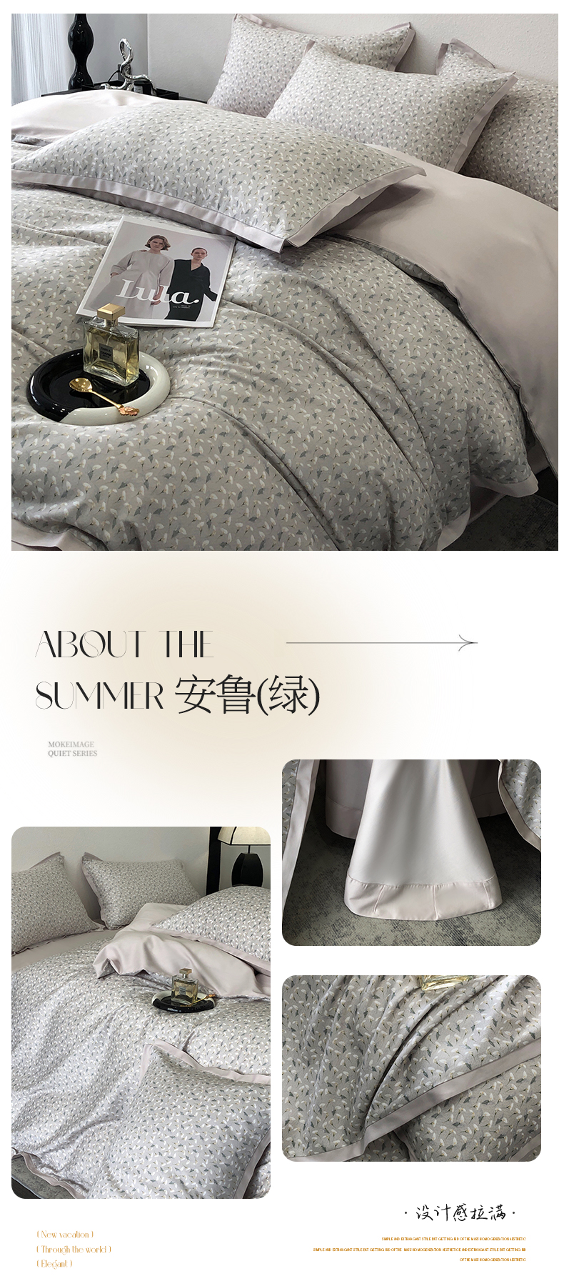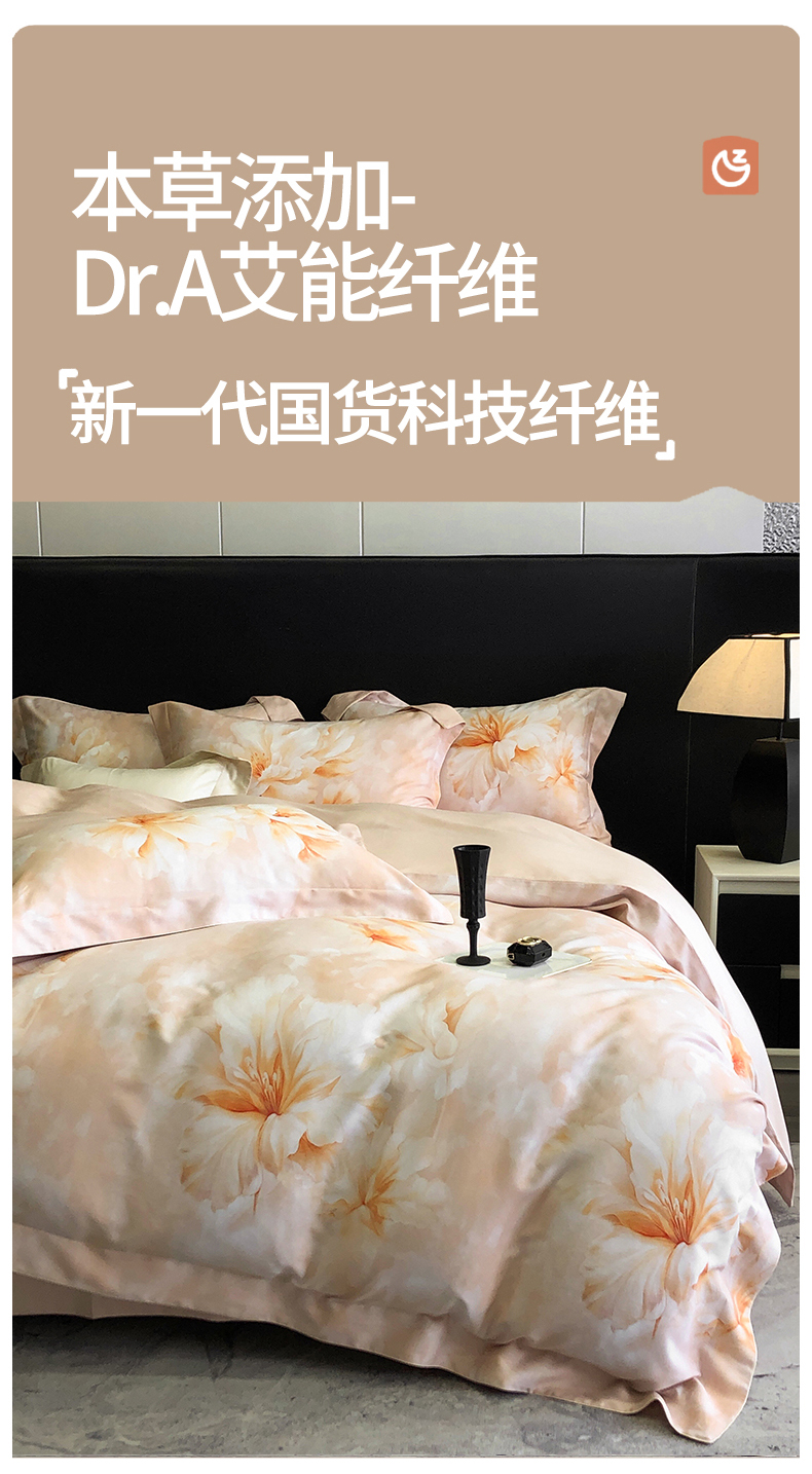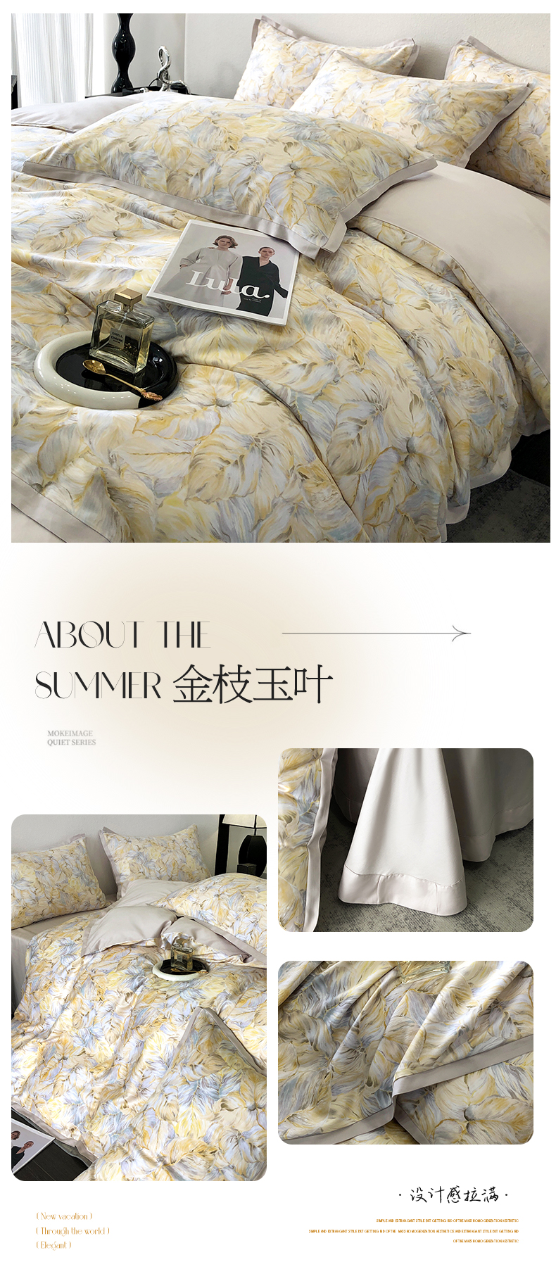 自然醒金太阳艾阳绒艾草天丝棉磨毛四件套轻奢印花被套裸睡床品KY