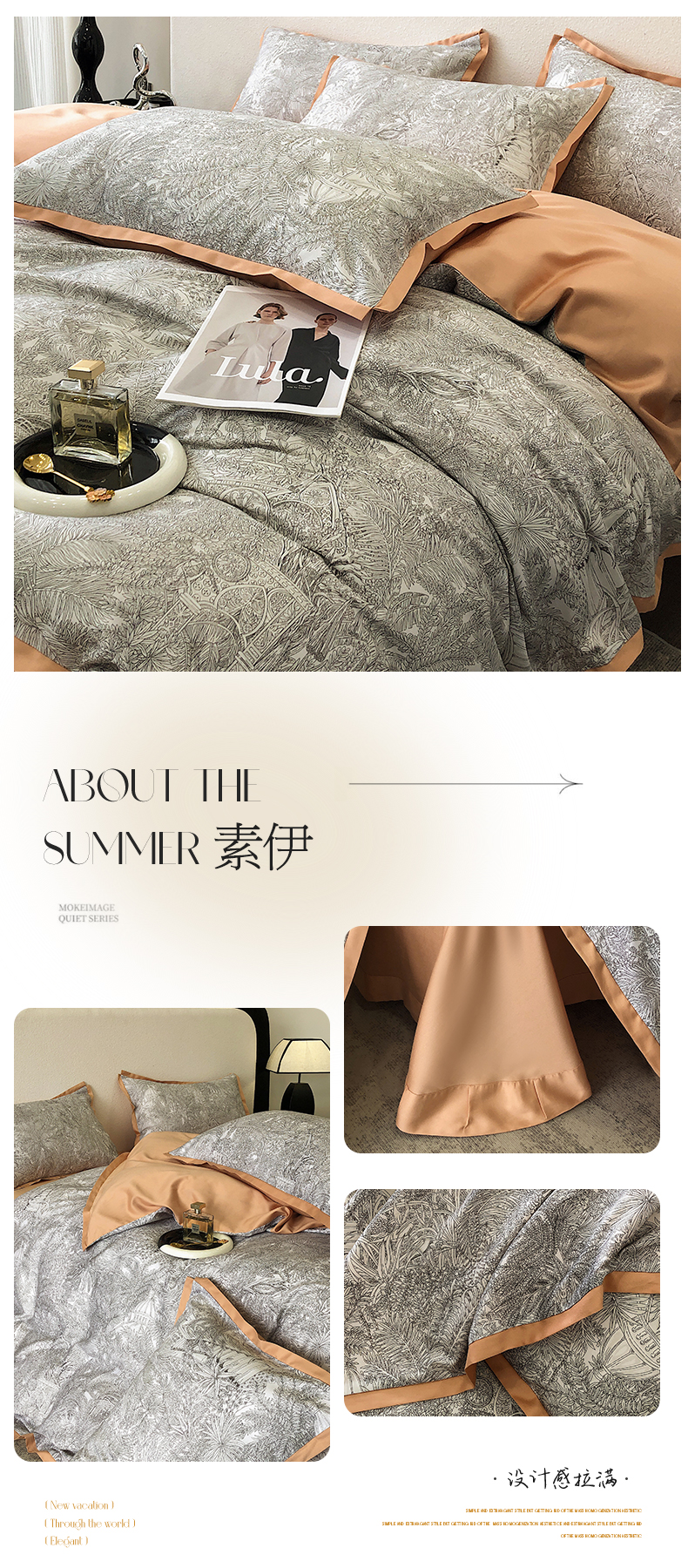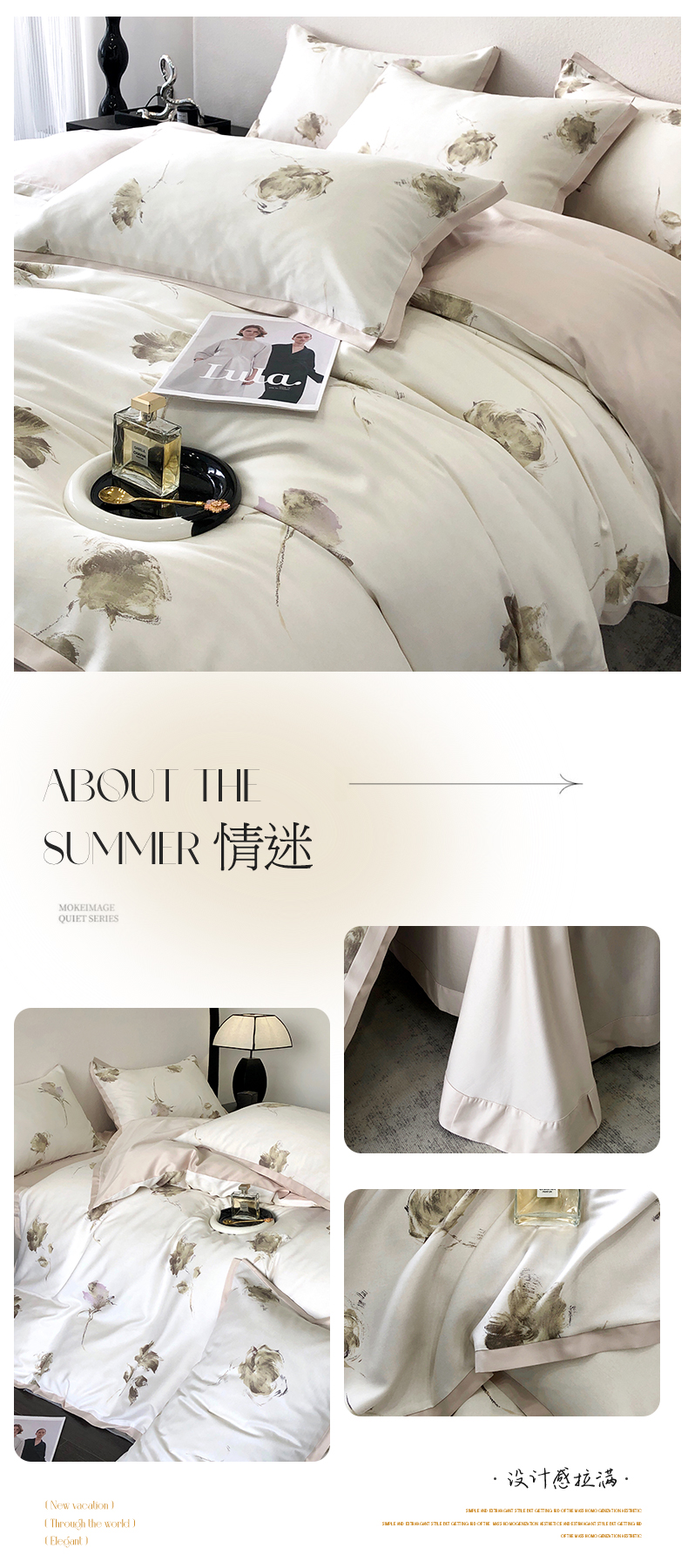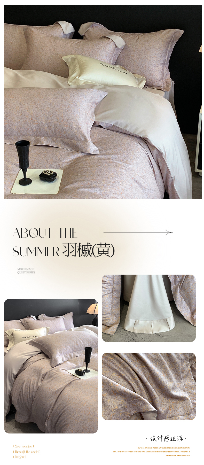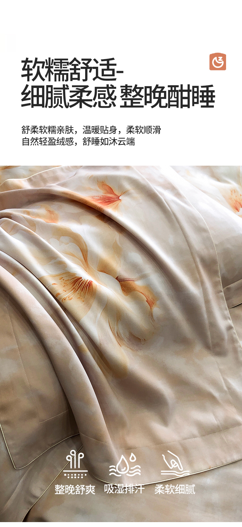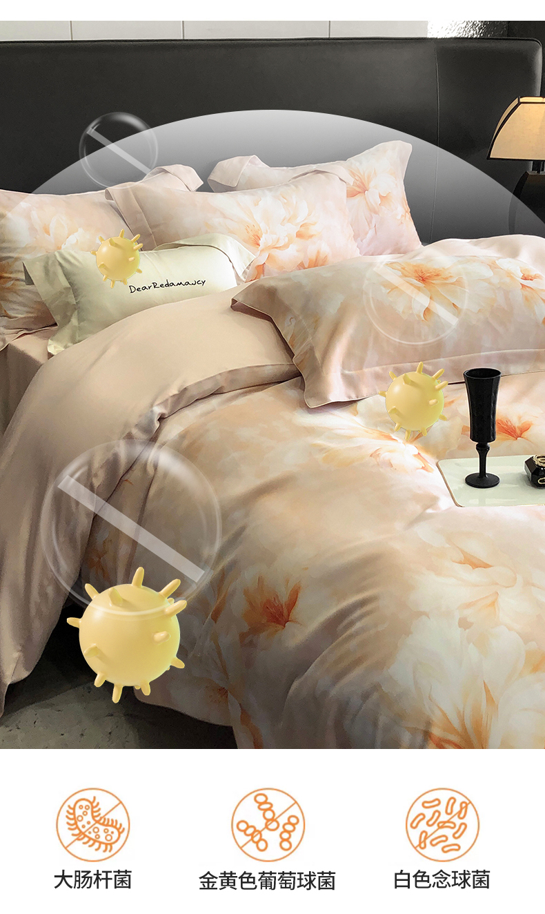 自然醒金太阳艾阳绒艾草天丝棉磨毛四件套轻奢印花被套裸睡床品KY