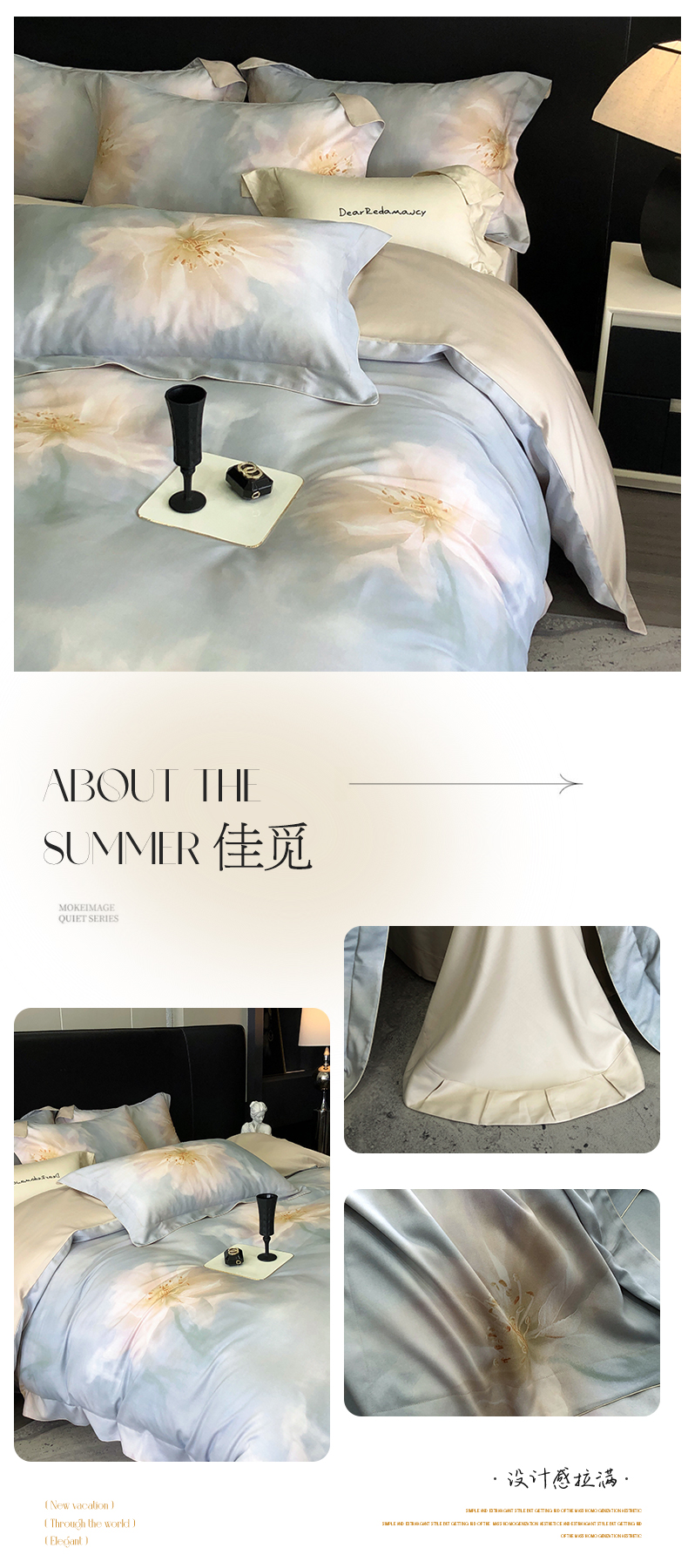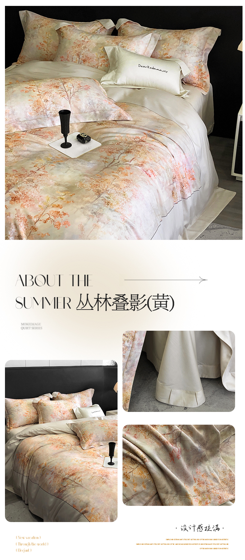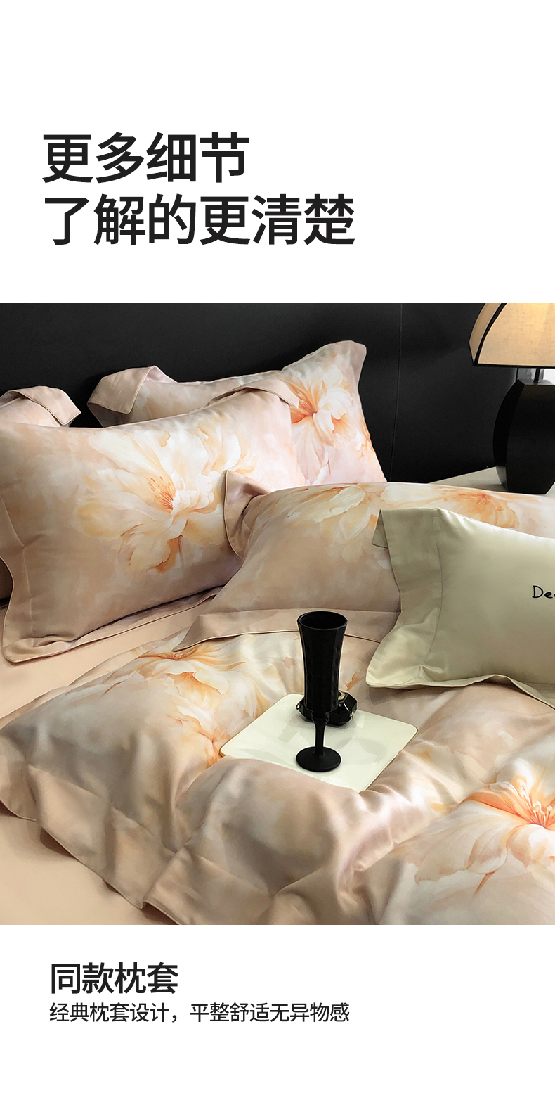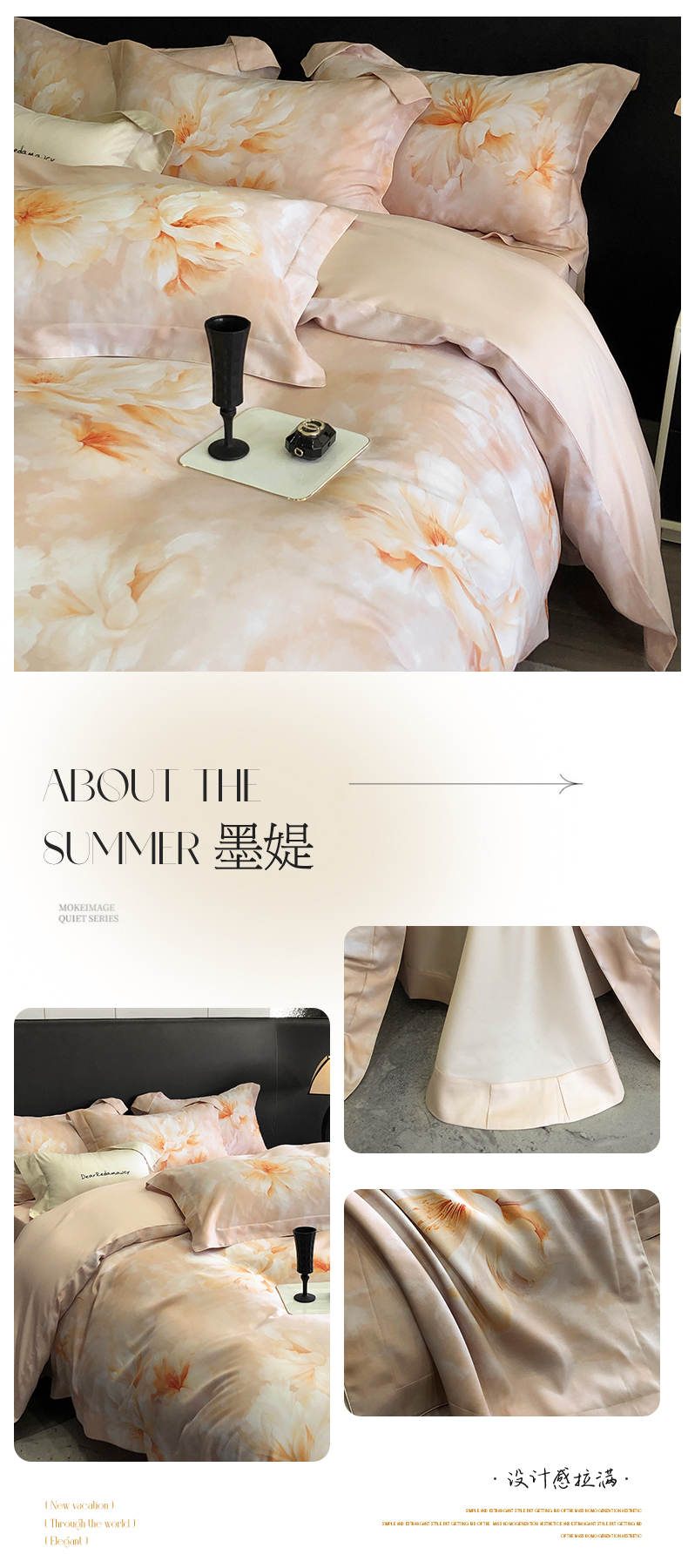 自然醒金太阳艾阳绒艾草天丝棉磨毛四件套轻奢印花被套裸睡床品KY