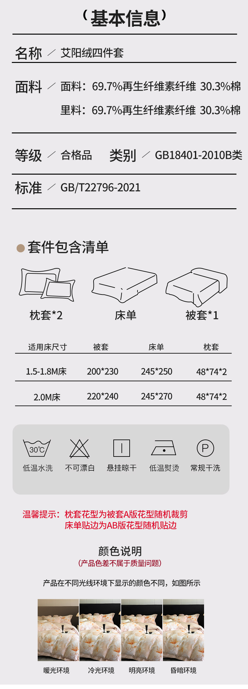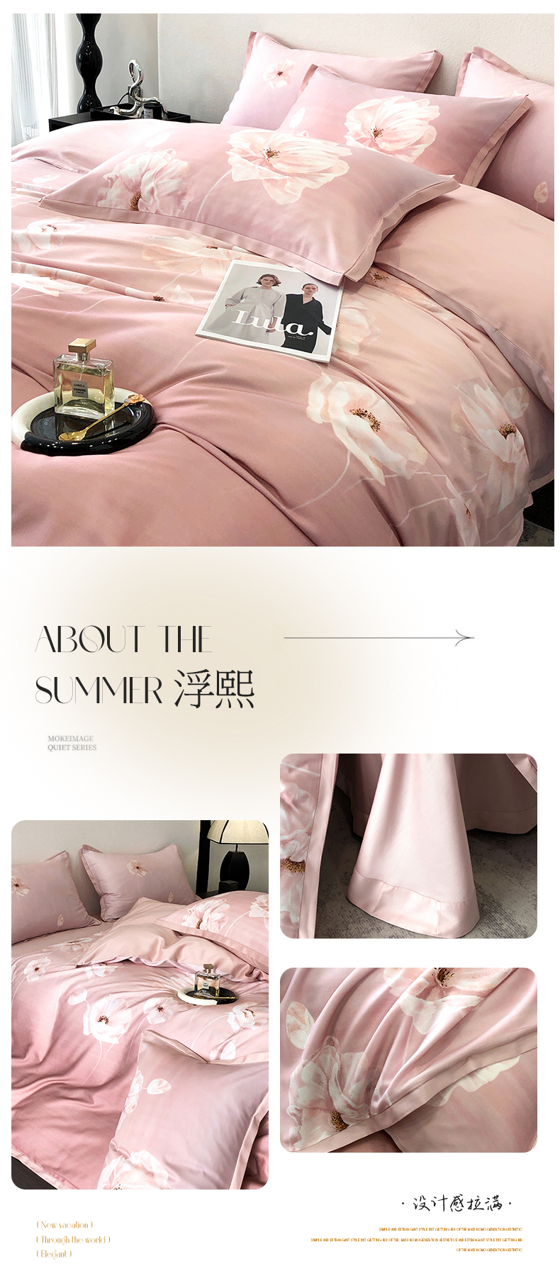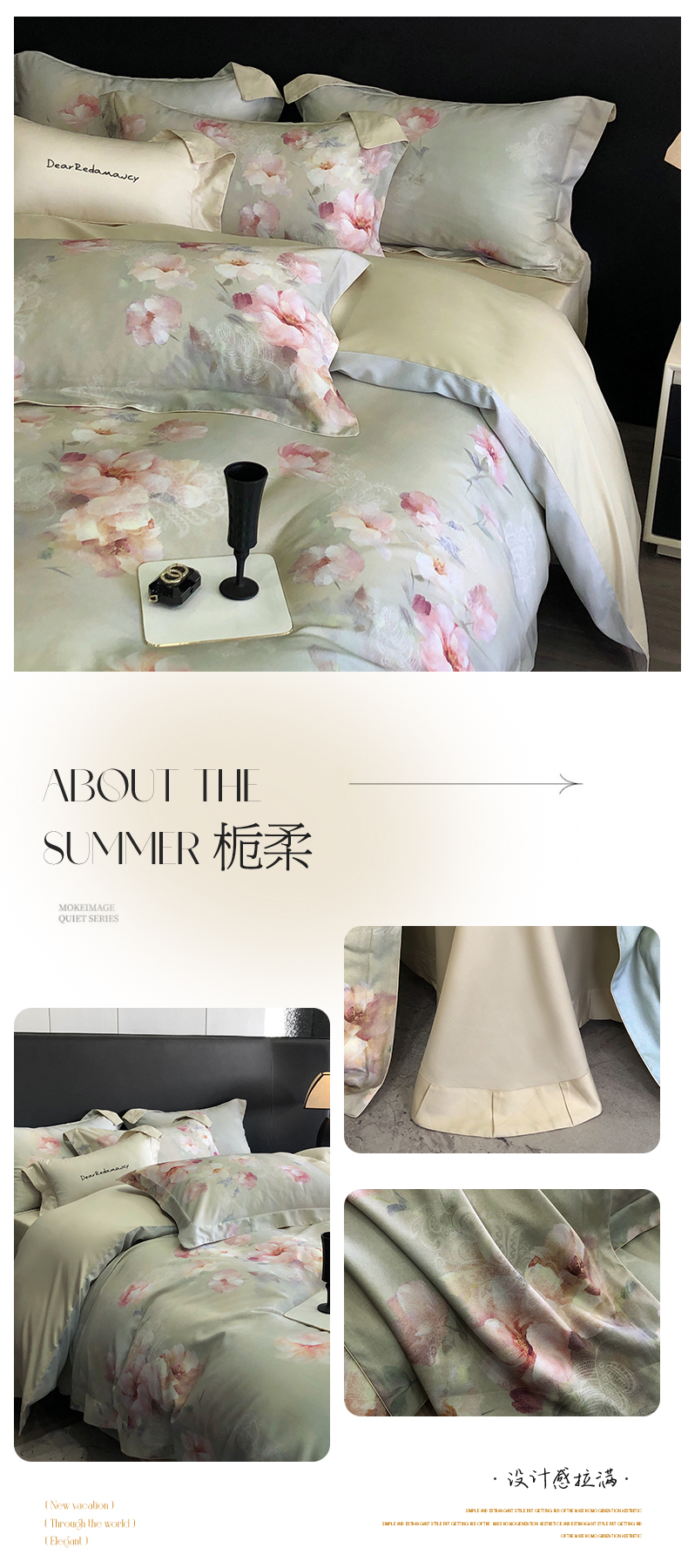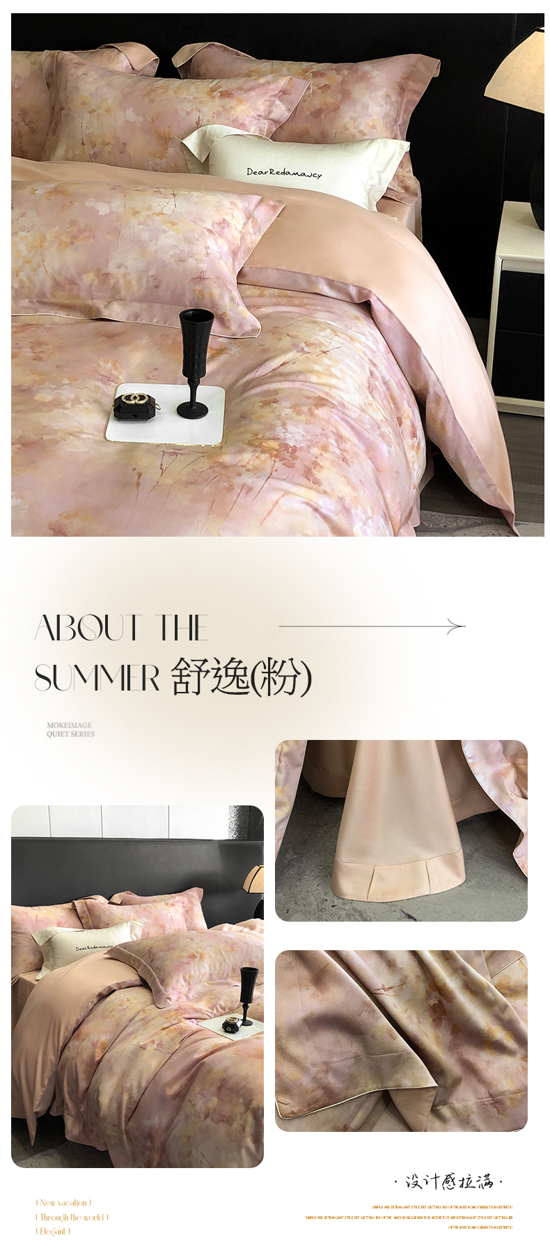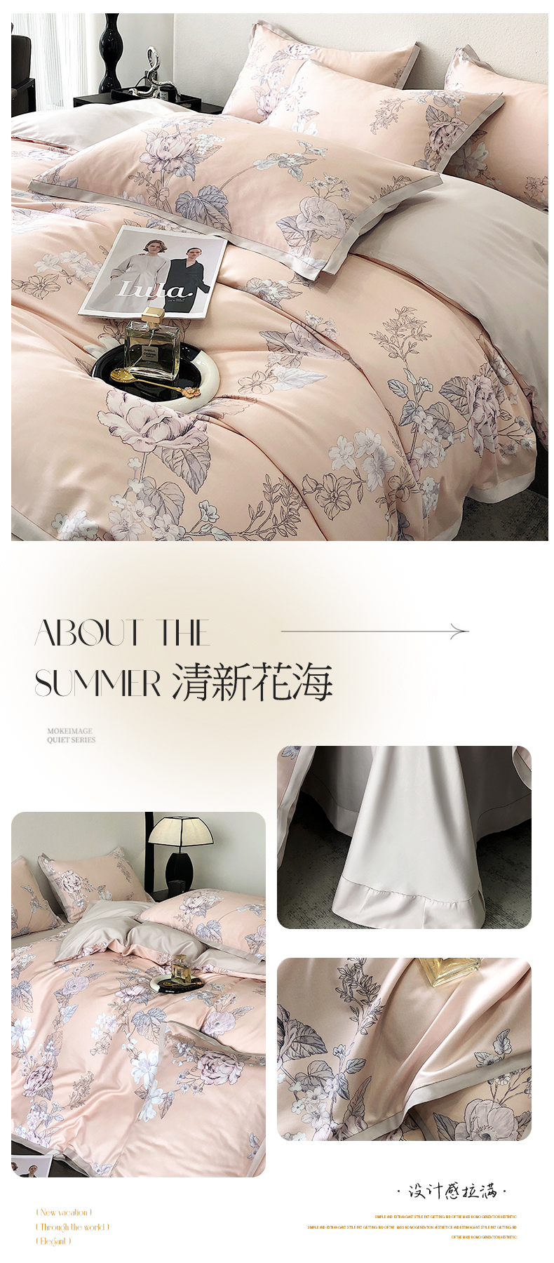 自然醒金太阳艾阳绒艾草天丝棉磨毛四件套轻奢印花被套裸睡床品KY