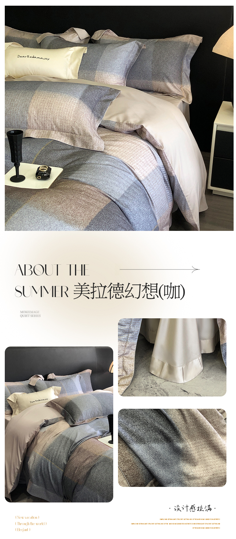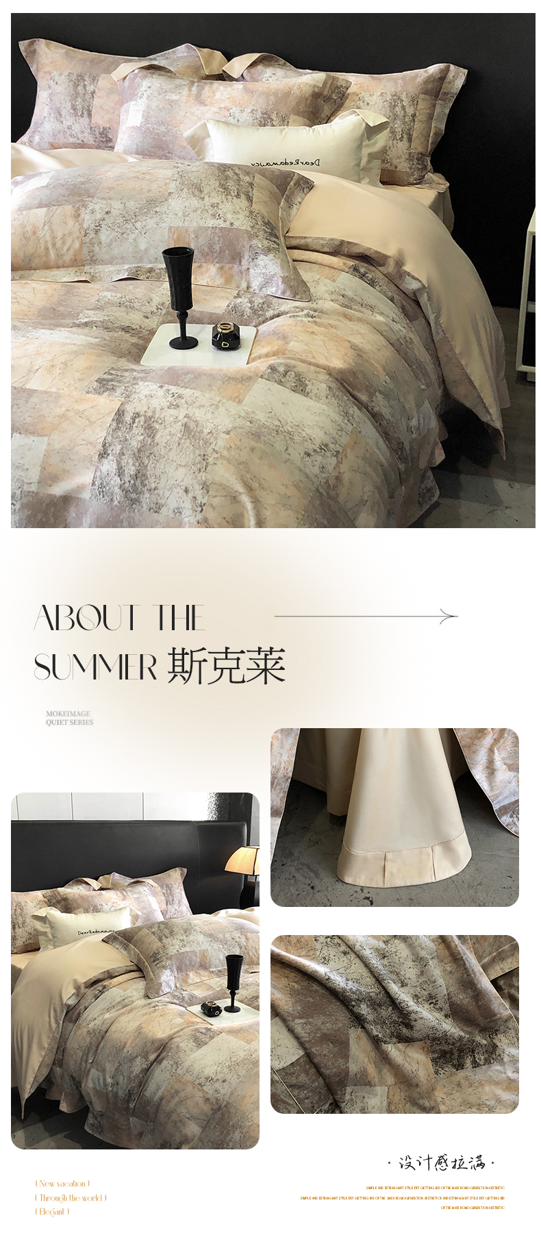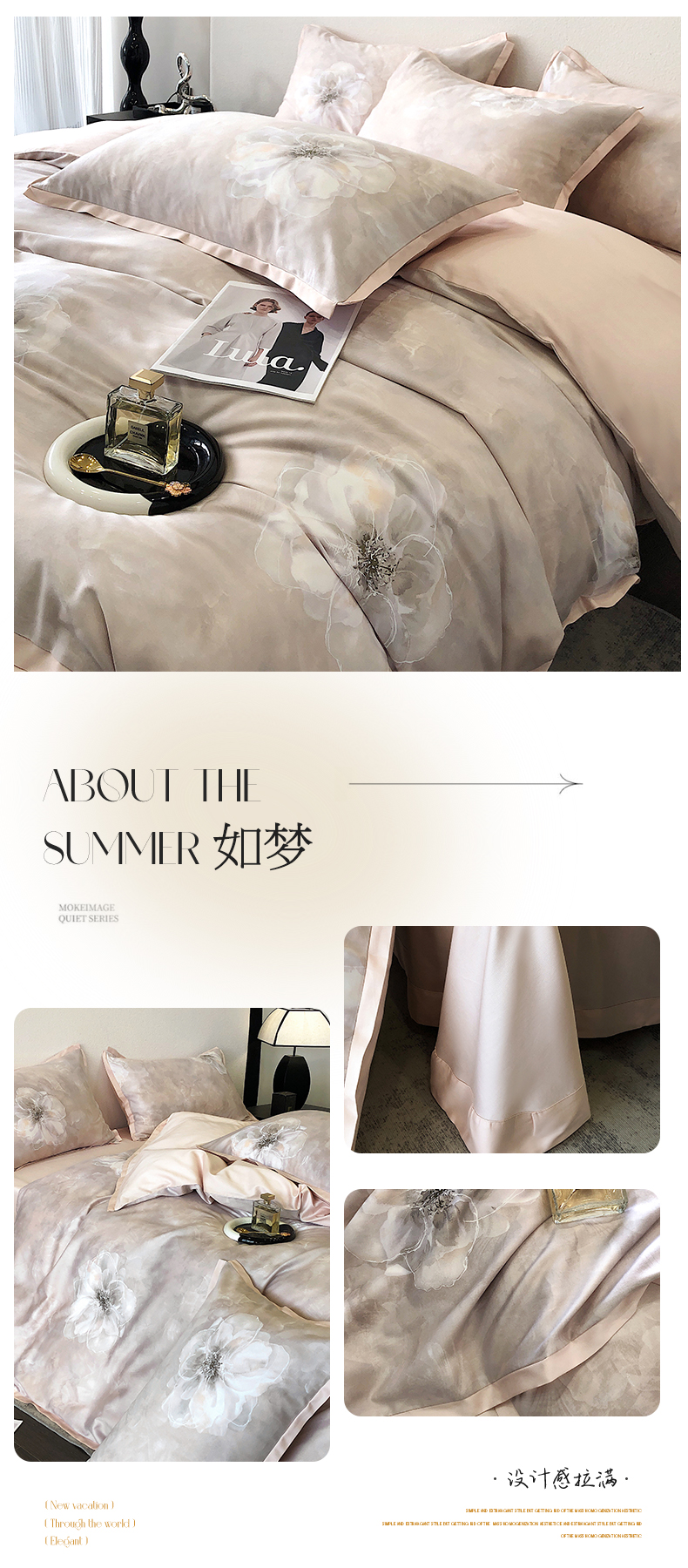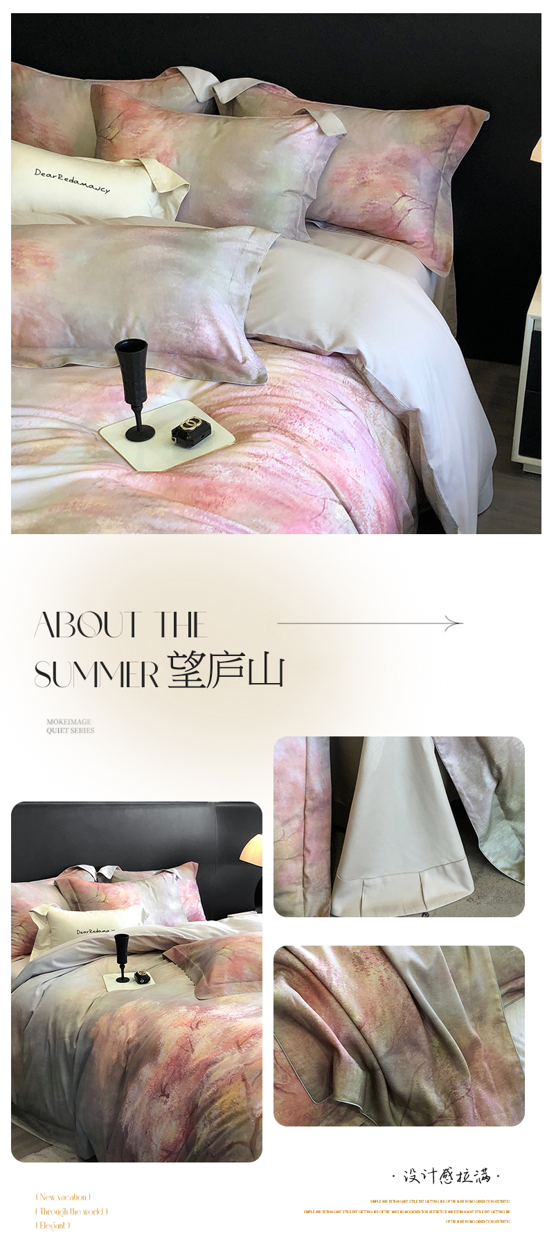 自然醒金太阳艾阳绒艾草天丝棉磨毛四件套轻奢印花被套裸睡床品KY