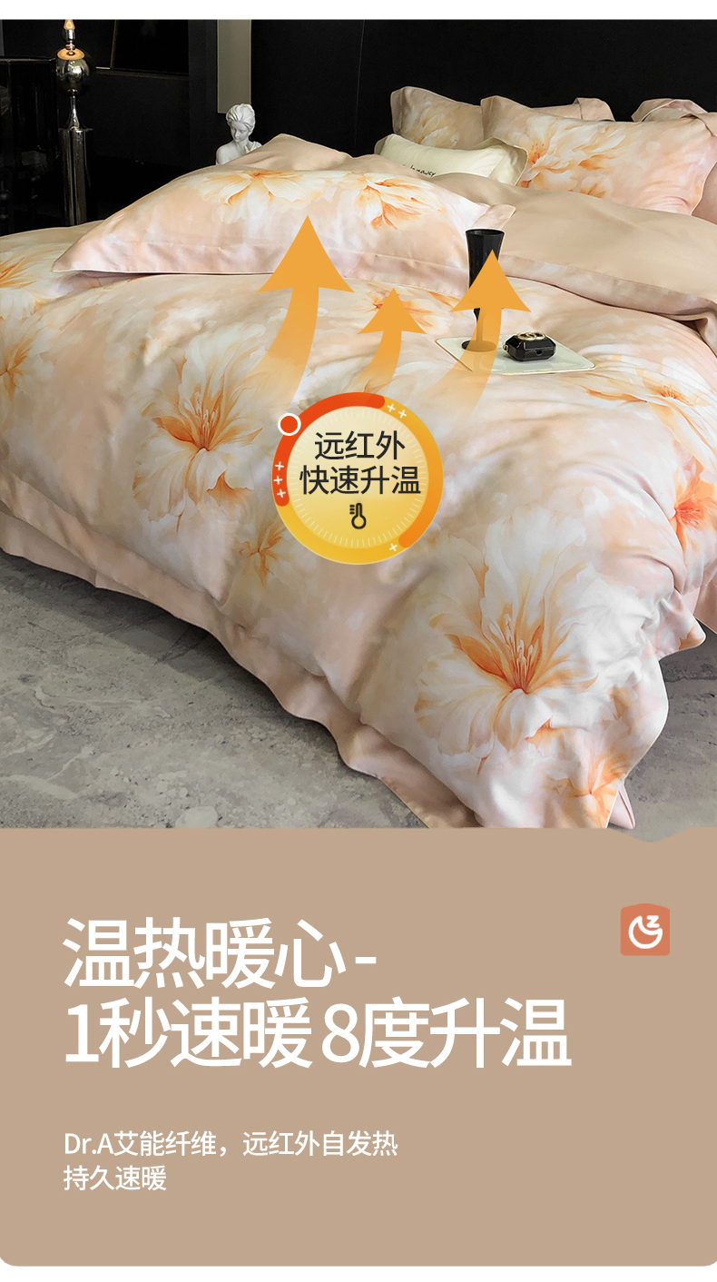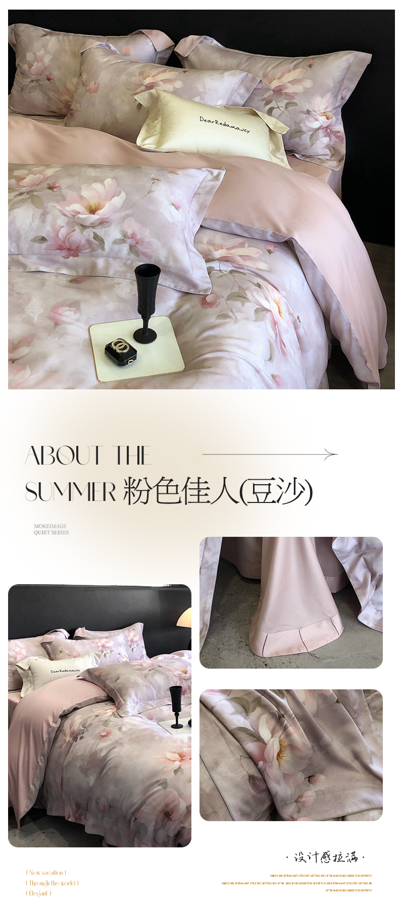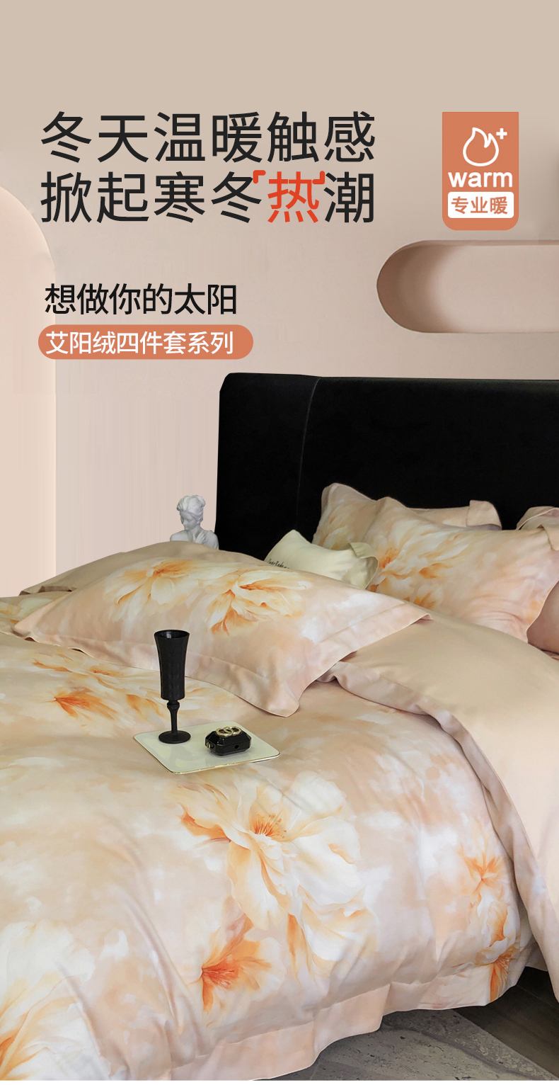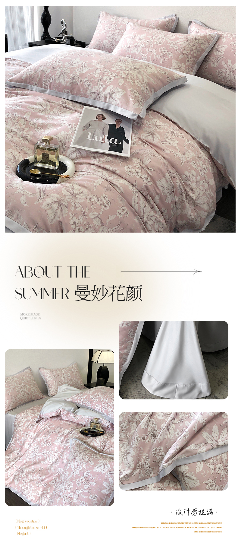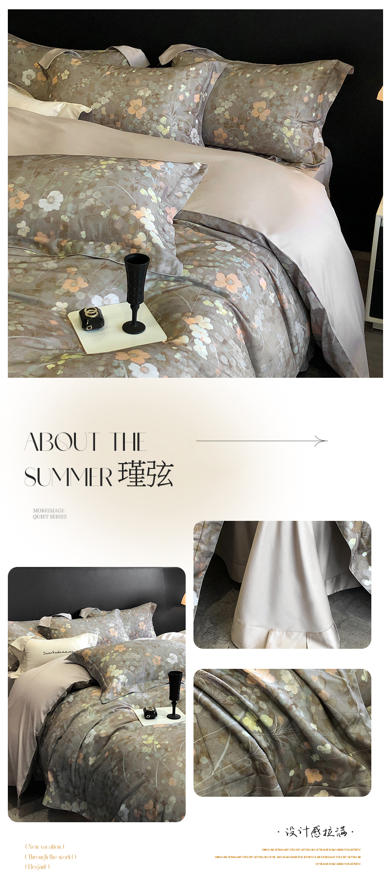 自然醒金太阳艾阳绒艾草天丝棉磨毛四件套轻奢印花被套裸睡床品KY