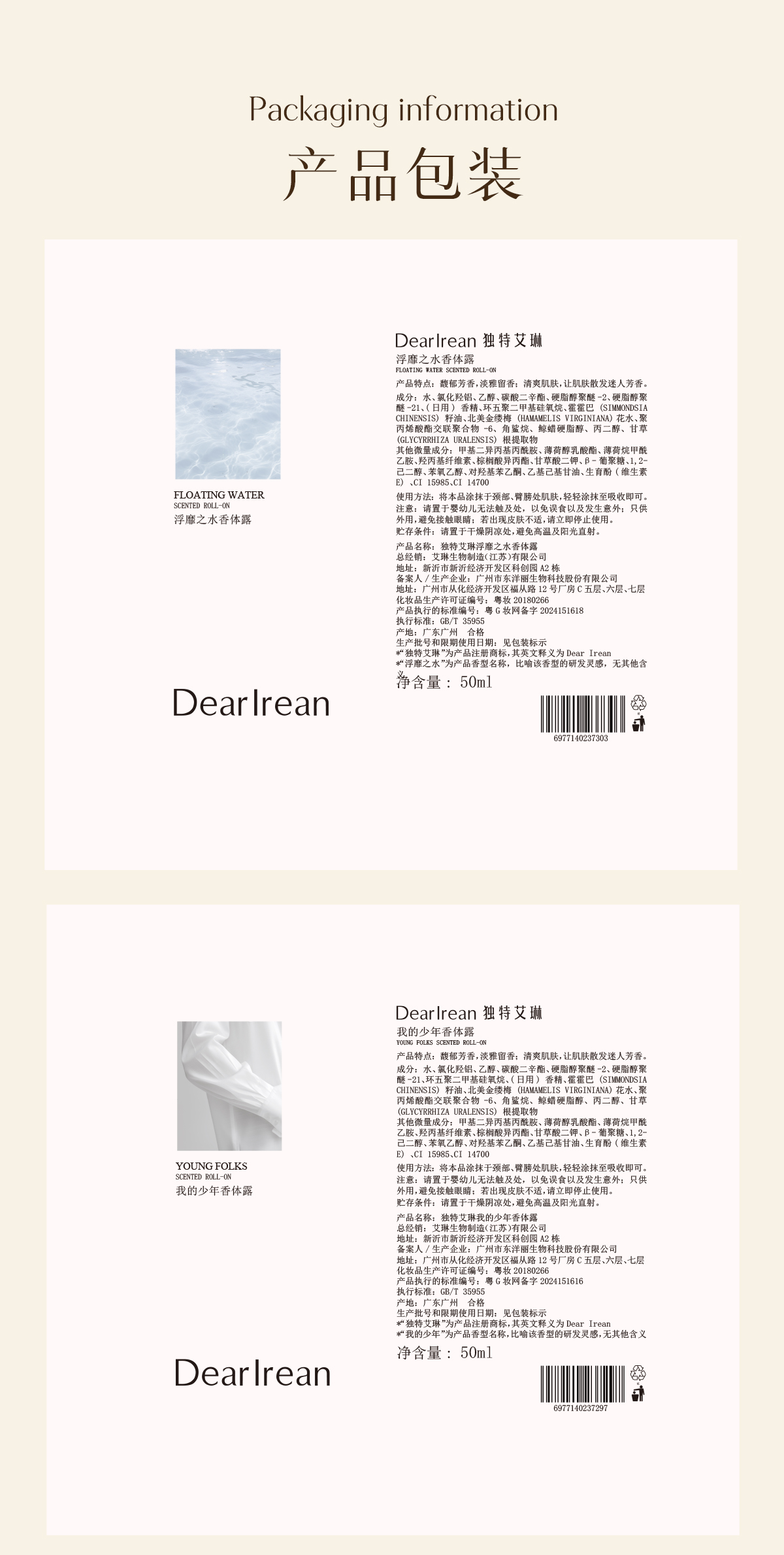独特艾琳止汗香体露50ml