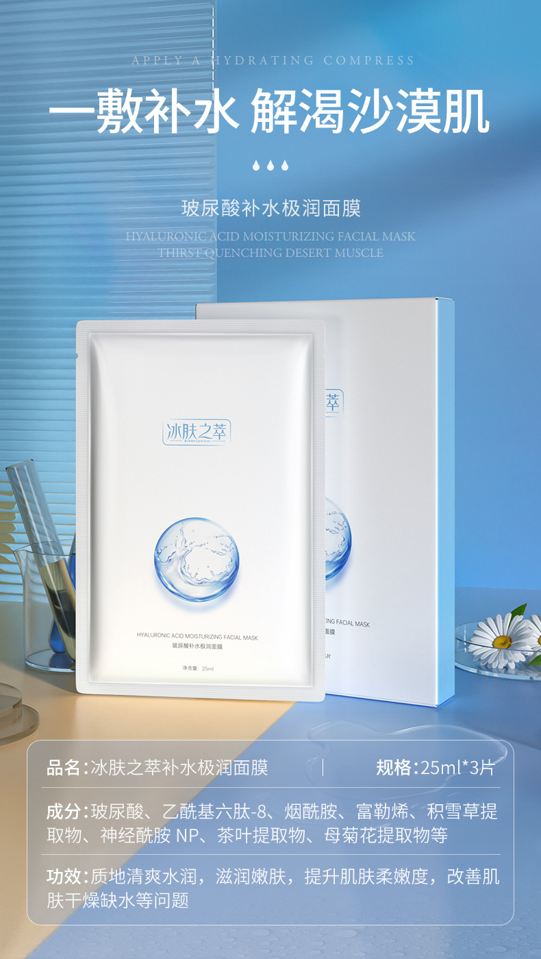 拍一发三 冰肤之萃玻尿酸极润面膜 面部护理 马齿苋锁水 清爽嫩肤 滋养保湿补水面膜