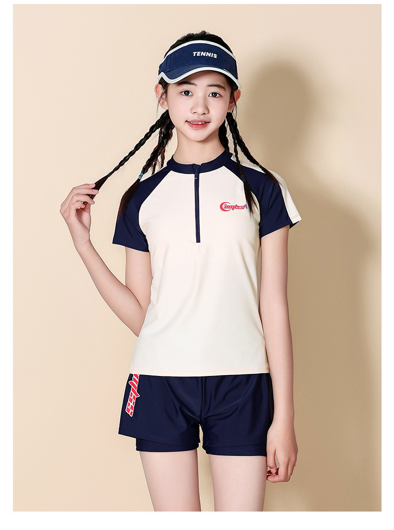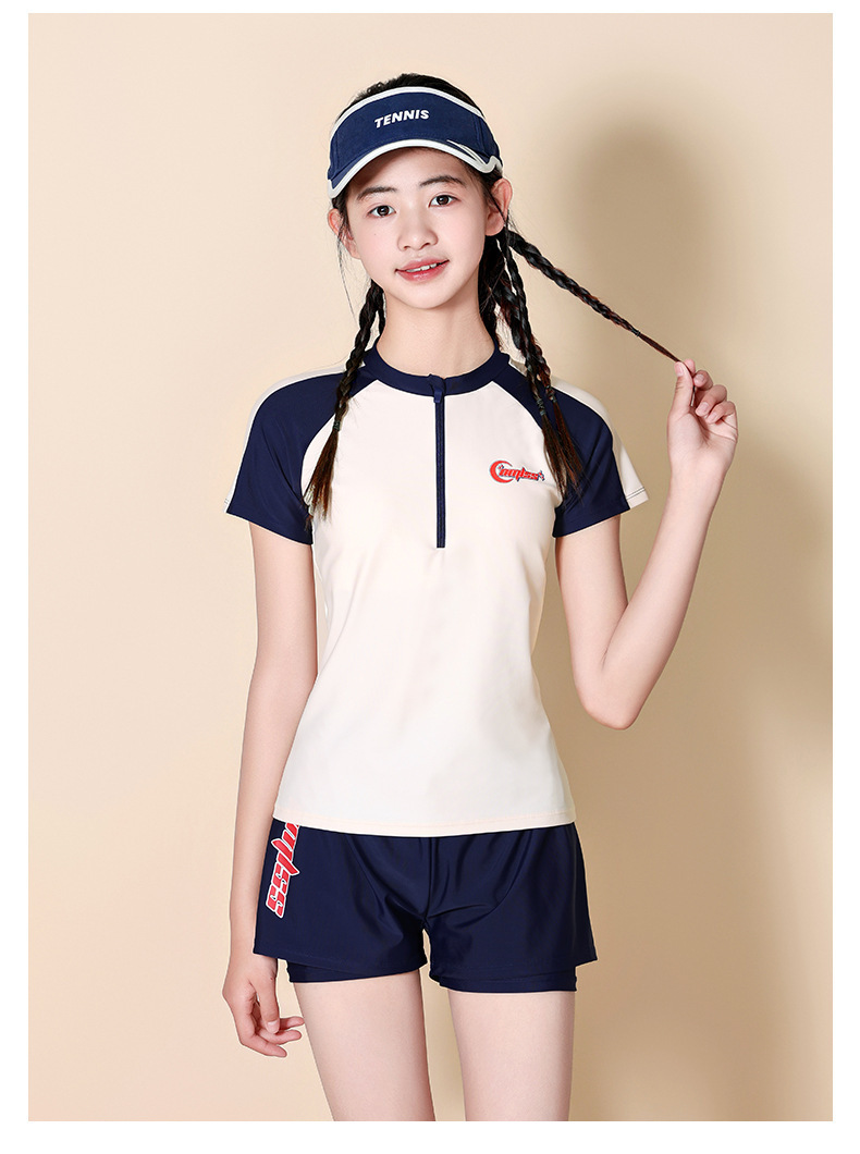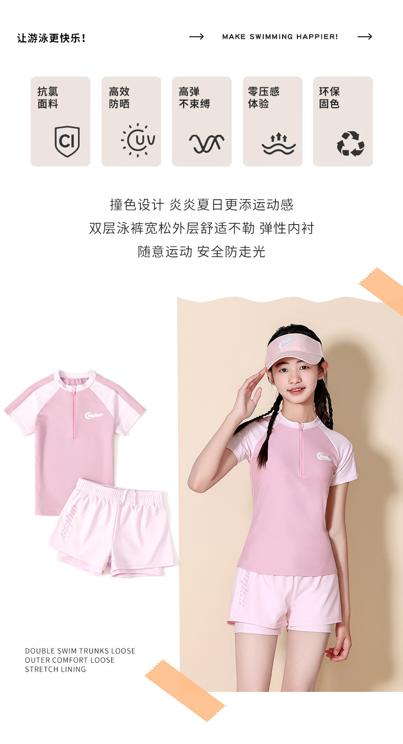 儿童泳衣女童中大童初中生保守分体2025夏季新款女孩游泳衣套装备
