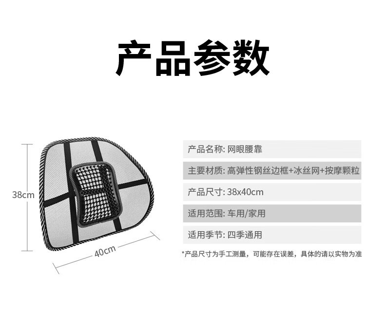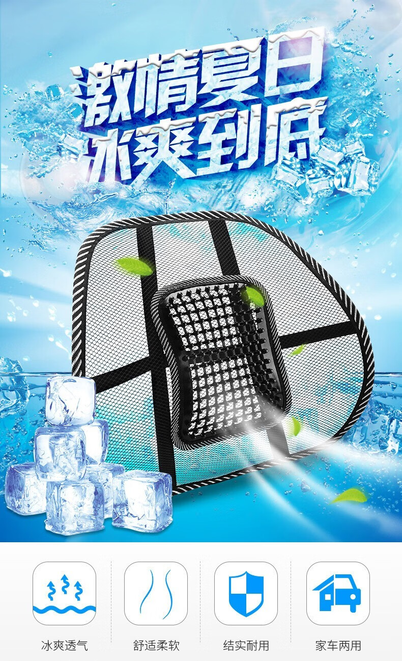 【推荐】安耐德冰珠按摩高弹力网眼腰靠 车家两用 冰爽透气 安装简单