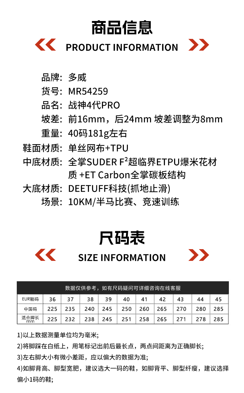 多威战神4代pro跑步鞋男女体育生体考专用马拉松竞速训练碳板跑鞋