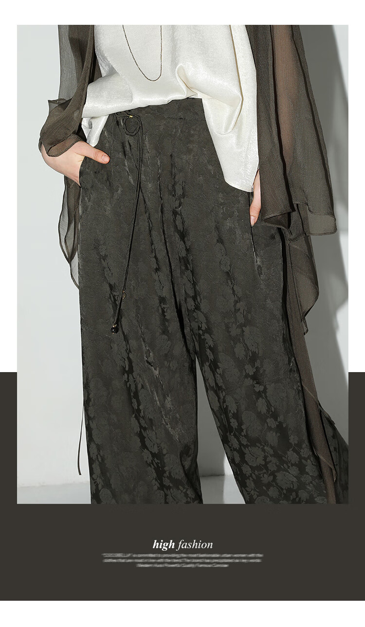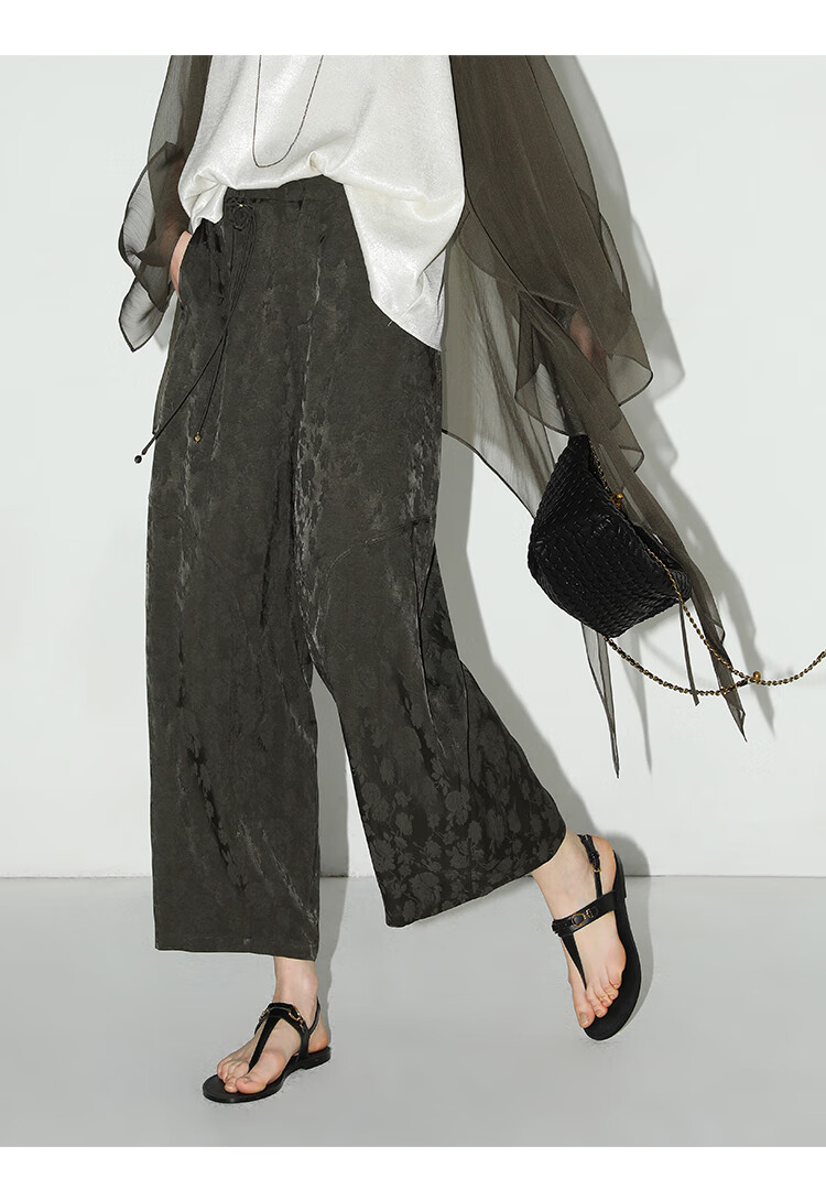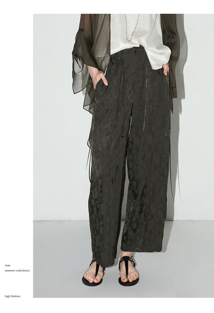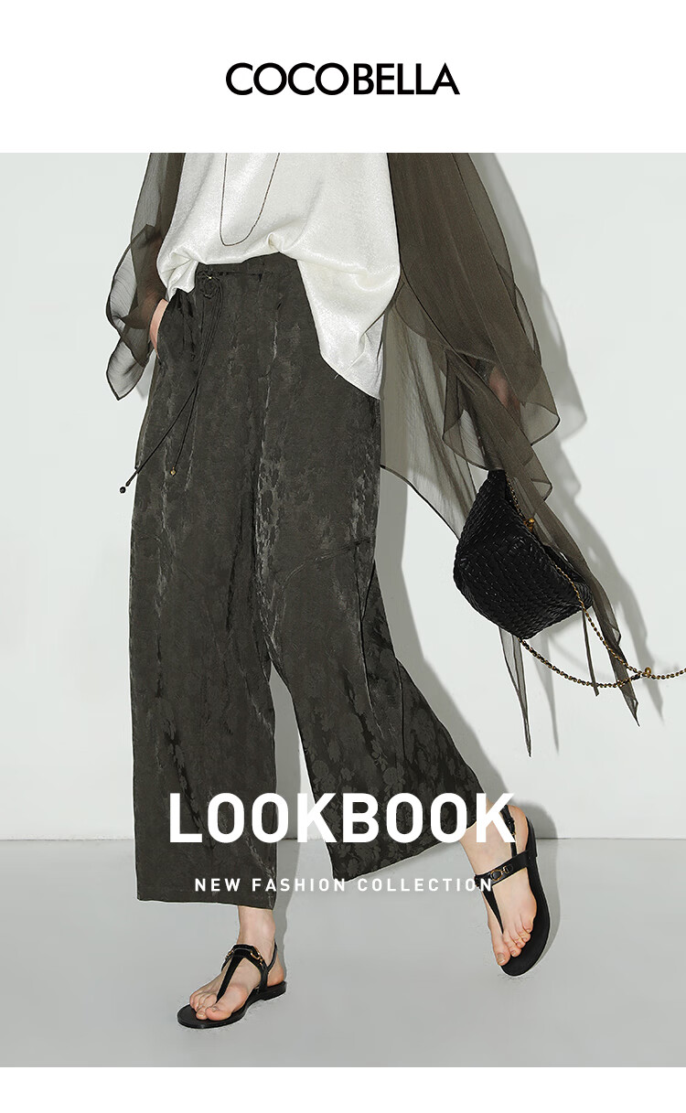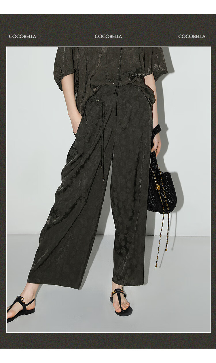 COCOBELLA[100%人丝]奢感新中式提花休闲裤25夏垂坠长裤PA3029-2