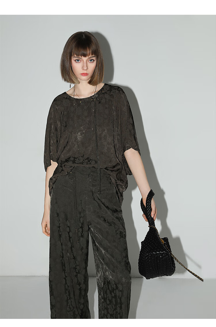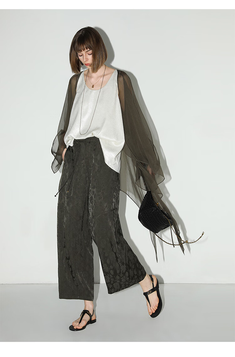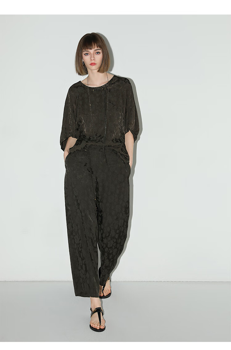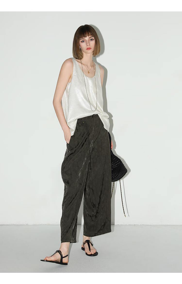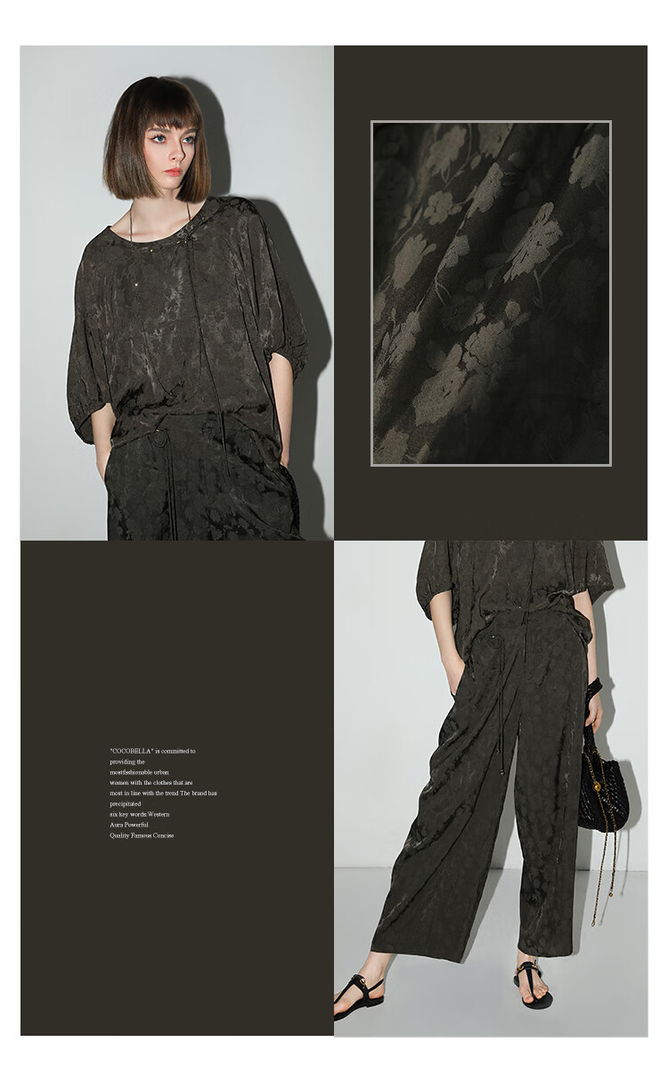COCOBELLA[100%人丝]奢感新中式提花休闲裤25夏垂坠长裤PA3029-2