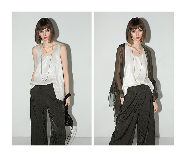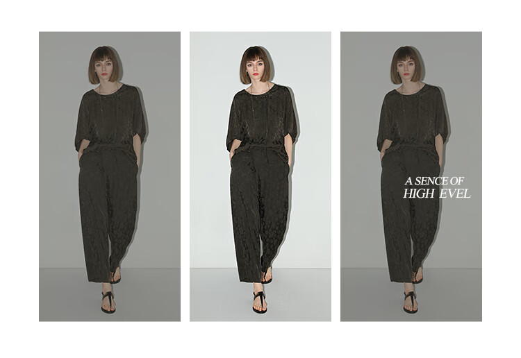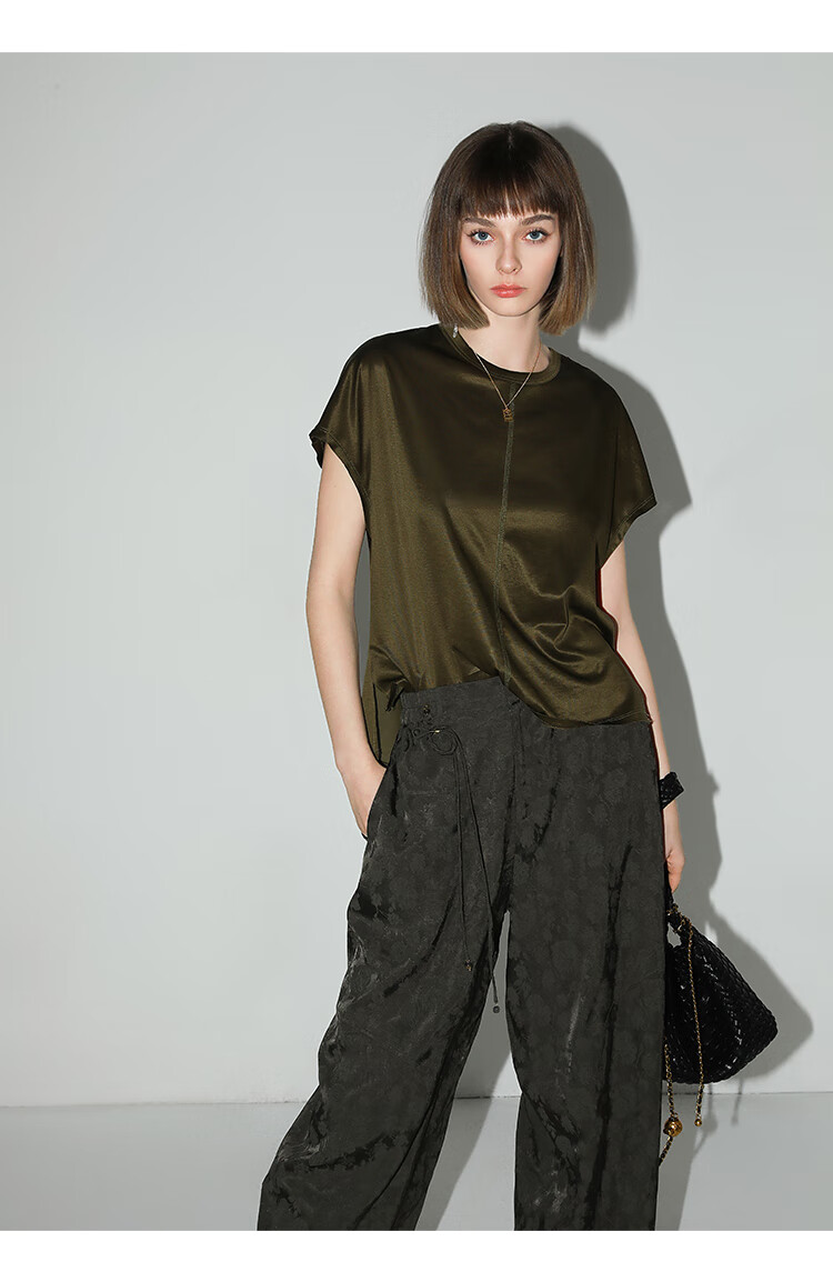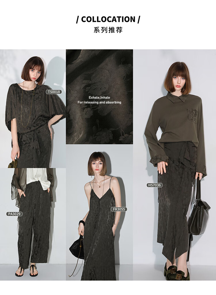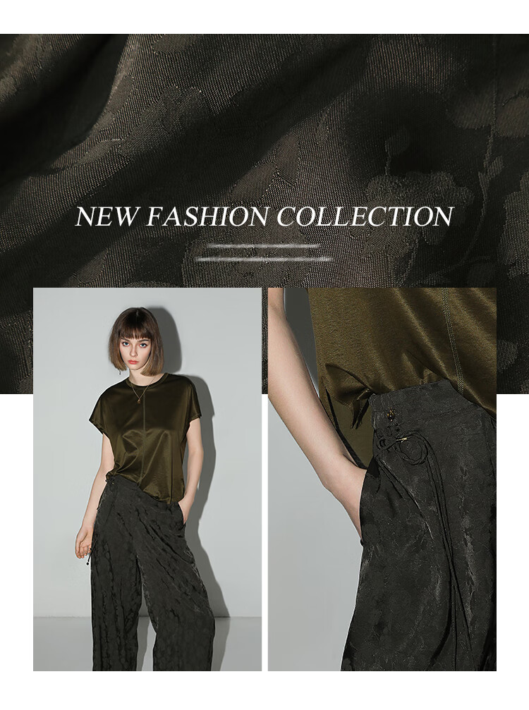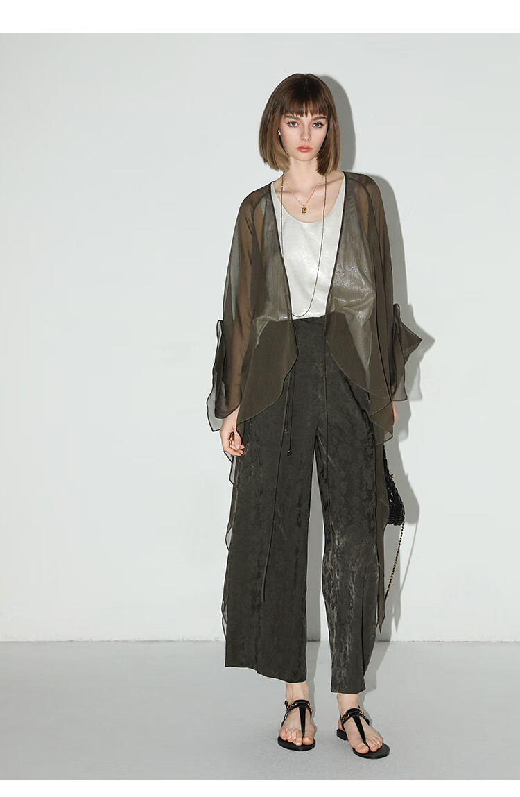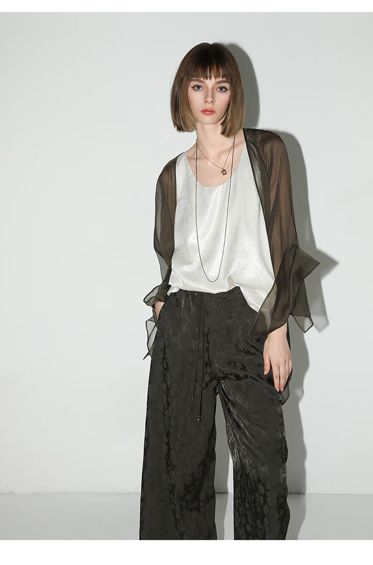 COCOBELLA[100%人丝]奢感新中式提花休闲裤25夏垂坠长裤PA3029-2