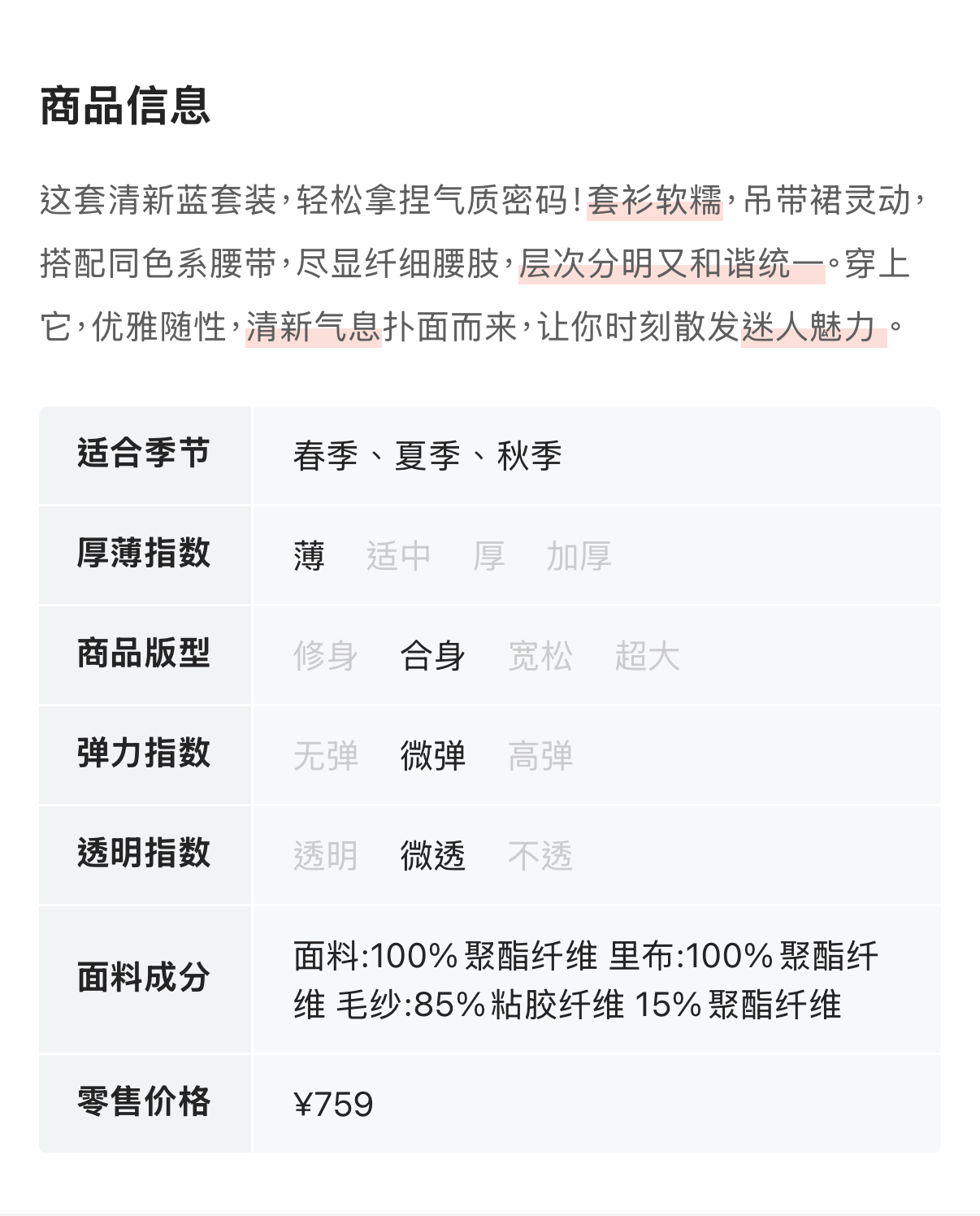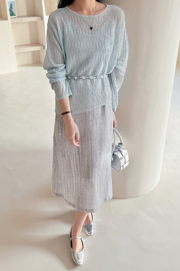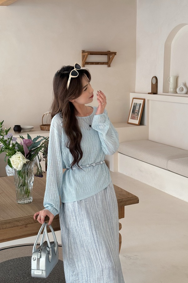 Le Malene 清新蓝气质配腰带连衣裙两件套装 22041