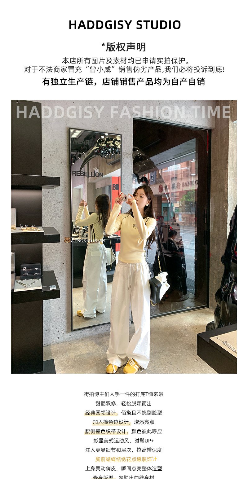 <曾小咸推荐>新品现货秒杀!卖完下架不再补 !微信粉丝打折价!! 蝴蝶结绣花修身打底衫 日常129.99/件 立减60 秒杀69.99/件!!