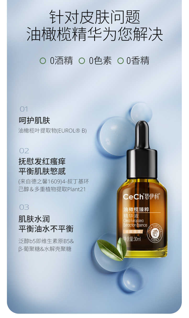 【亢焱去痘 维稳平衡 舒缓 退红】油橄榄精华5ml/30ml CeCh瑟伊科