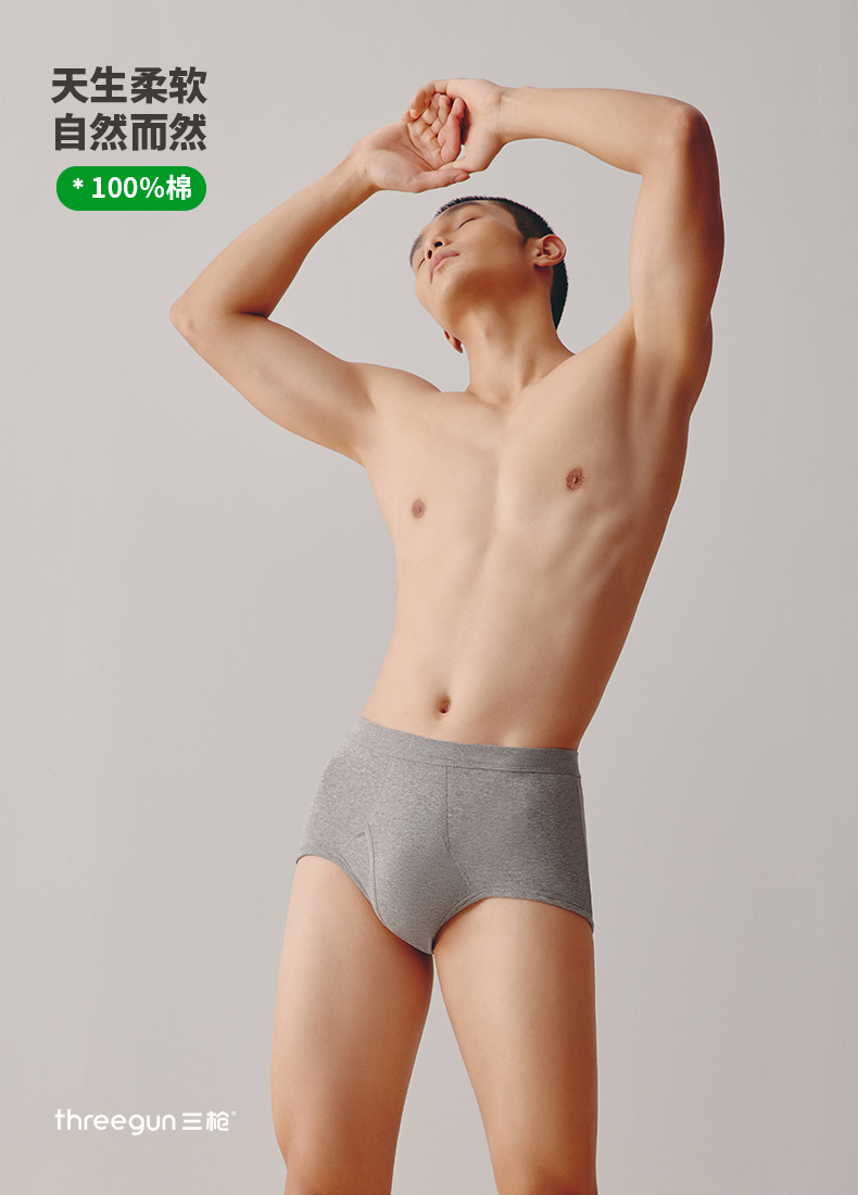 Threegun三枪 【舒肤棉】罗纹弹力男士三角内裤(1条装)- 40797B011