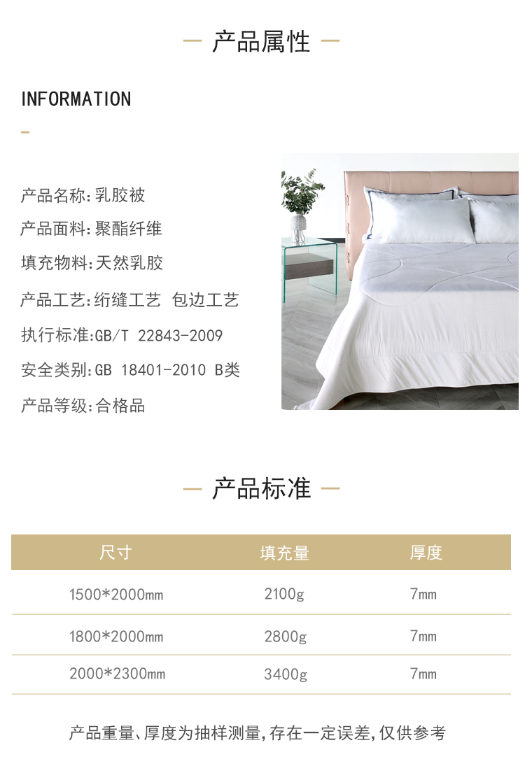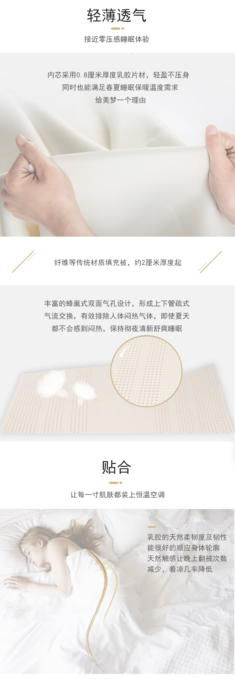 泰国天然乳胶被 防螨轻薄透气贴合收纳方便【吱嘛家居】